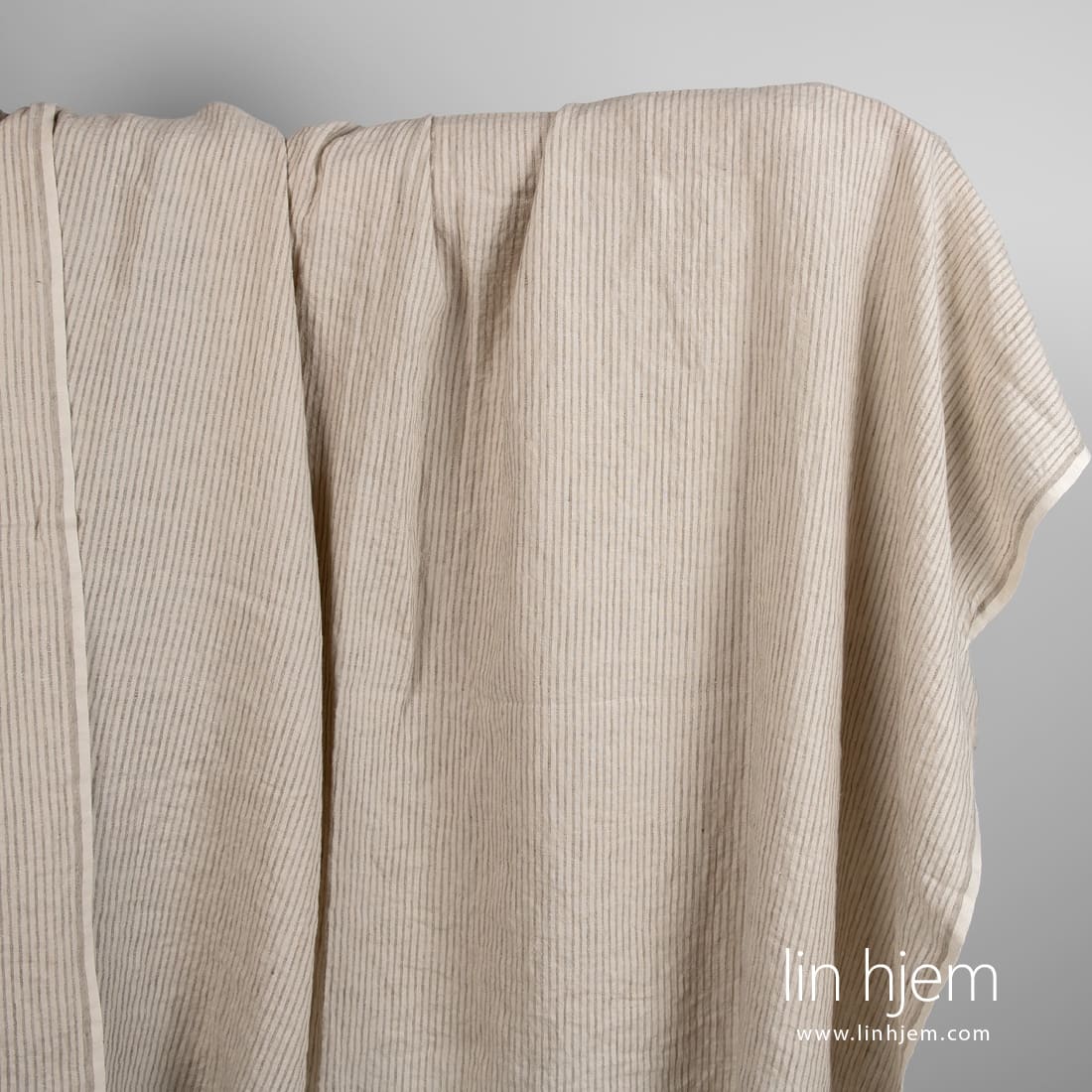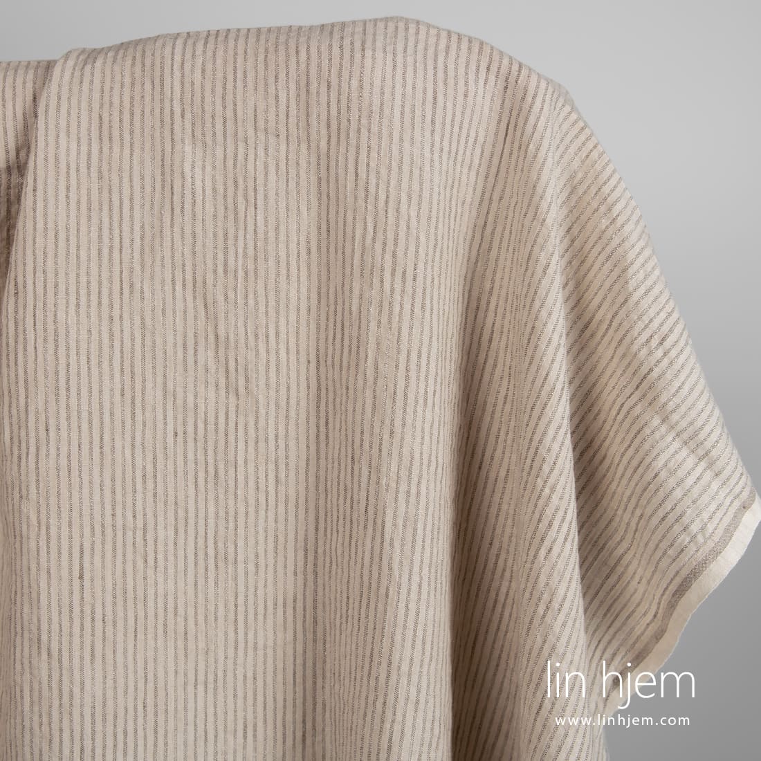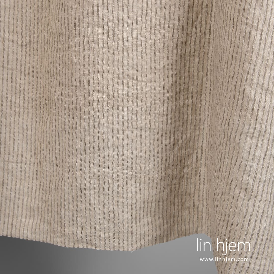 • Linstoff i lys kakaofarge med striper, vasket