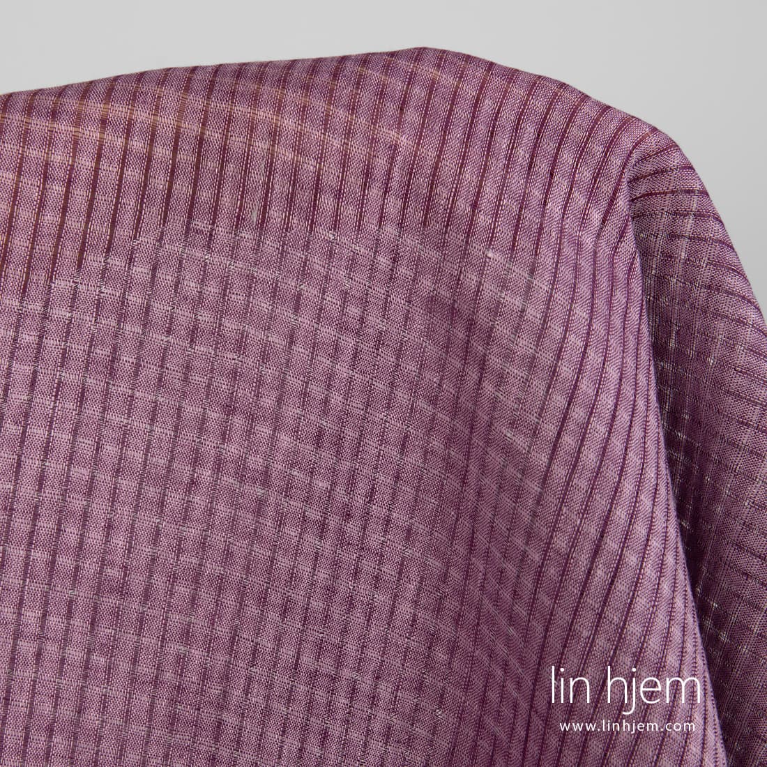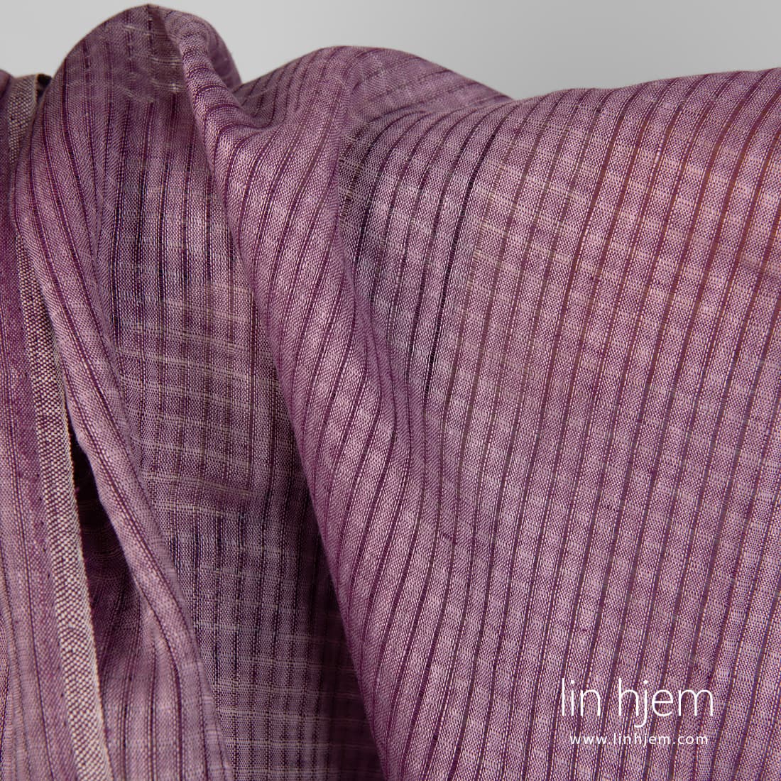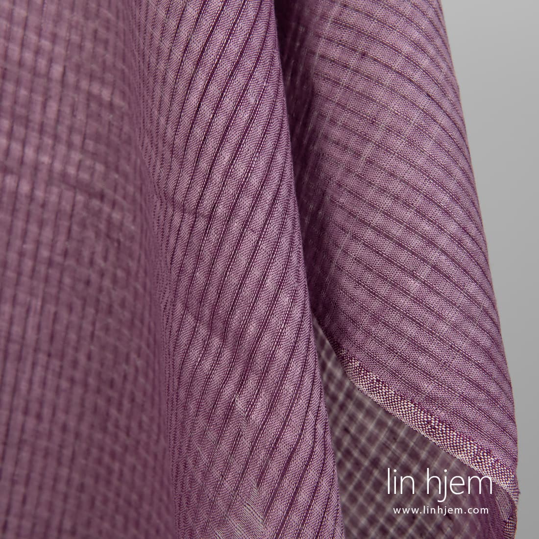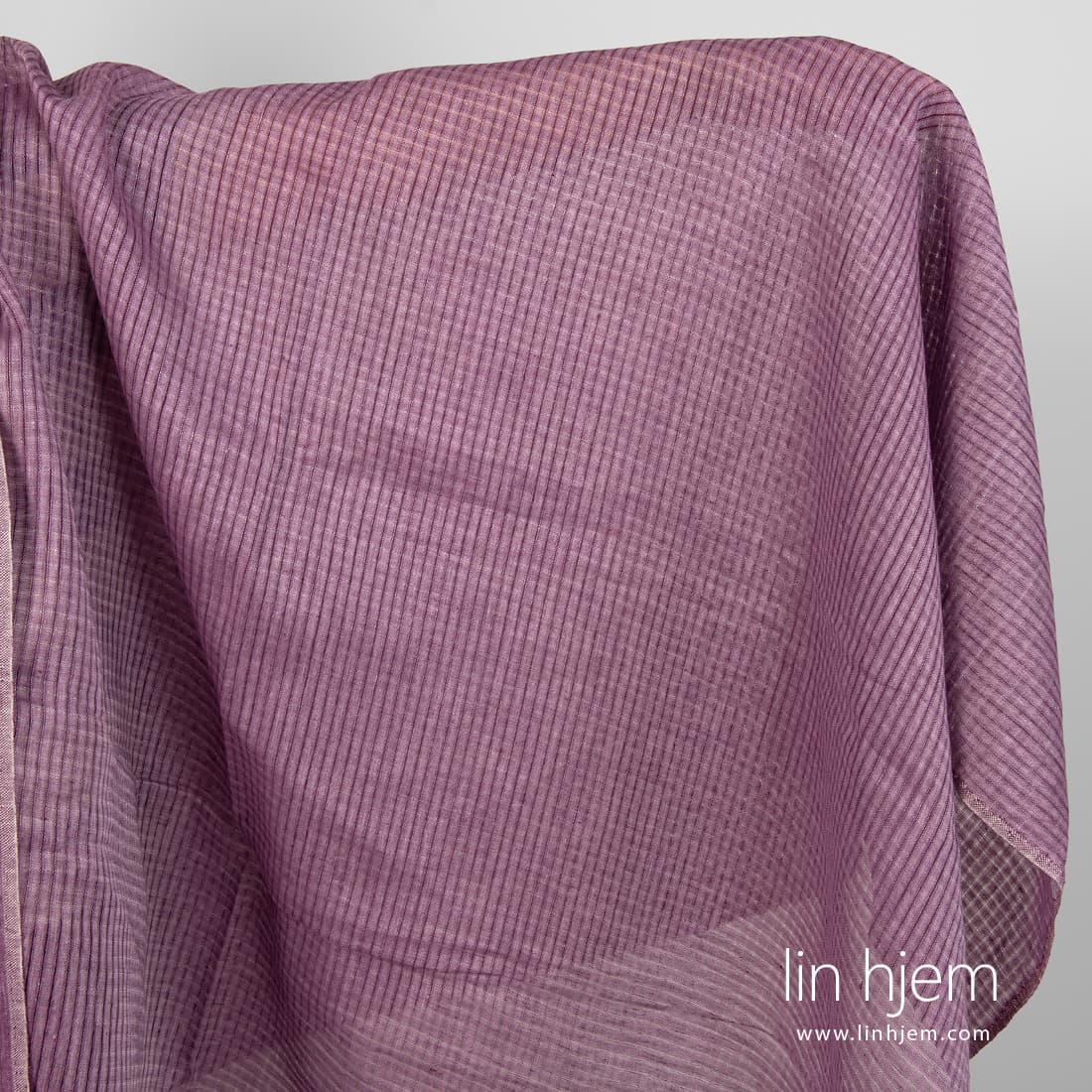 • Linstoff lilla med gjennomsiktige ruter vevd av syrin og rødlilla garn, melange