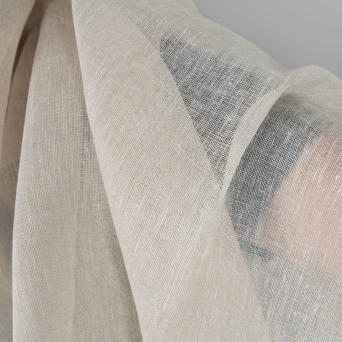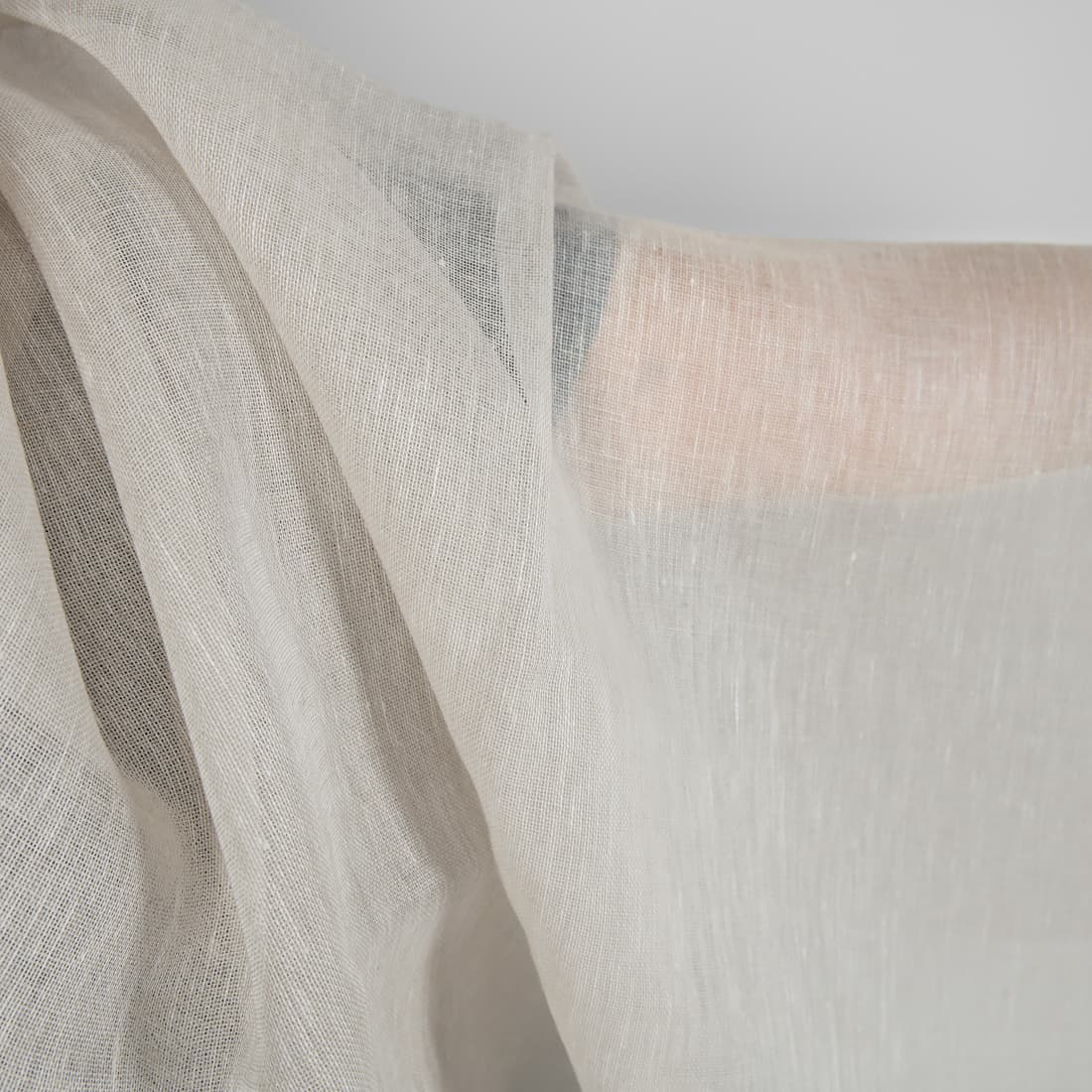 • Linstoff lysebrunt melert gjennomsiktig 150cm bredt