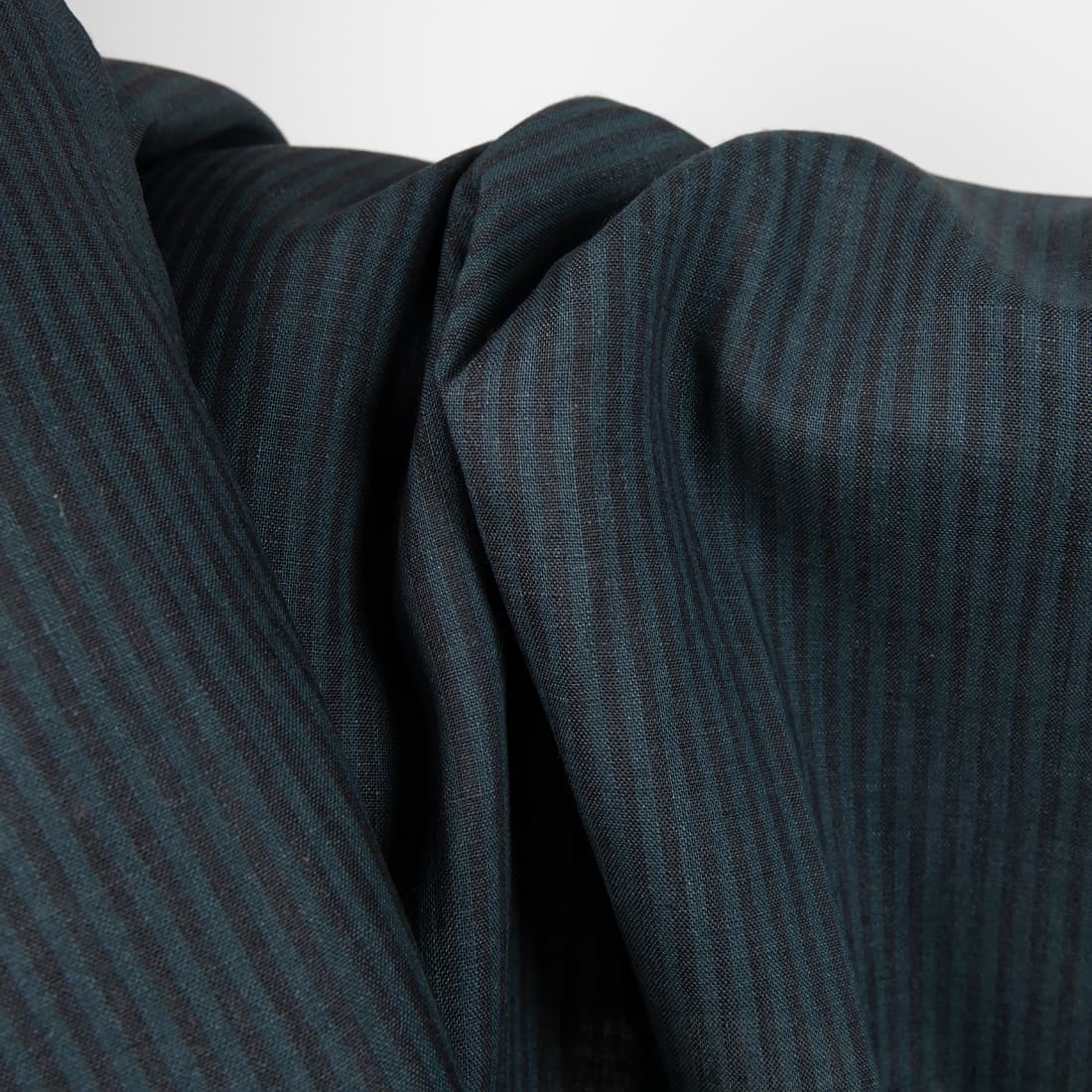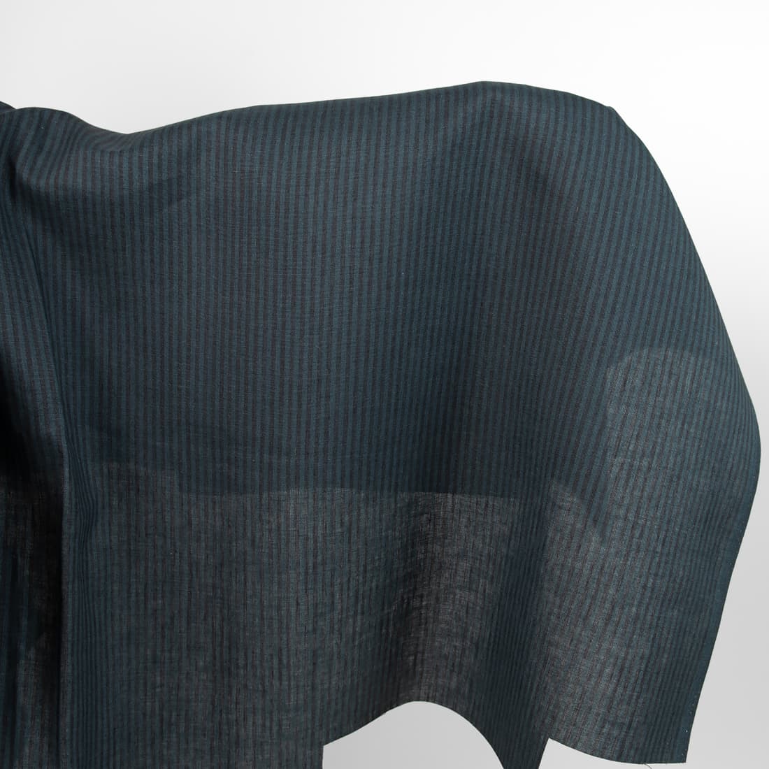 • Linstoff med blå og svarte striper for å sy klær og hjemmetekstiler