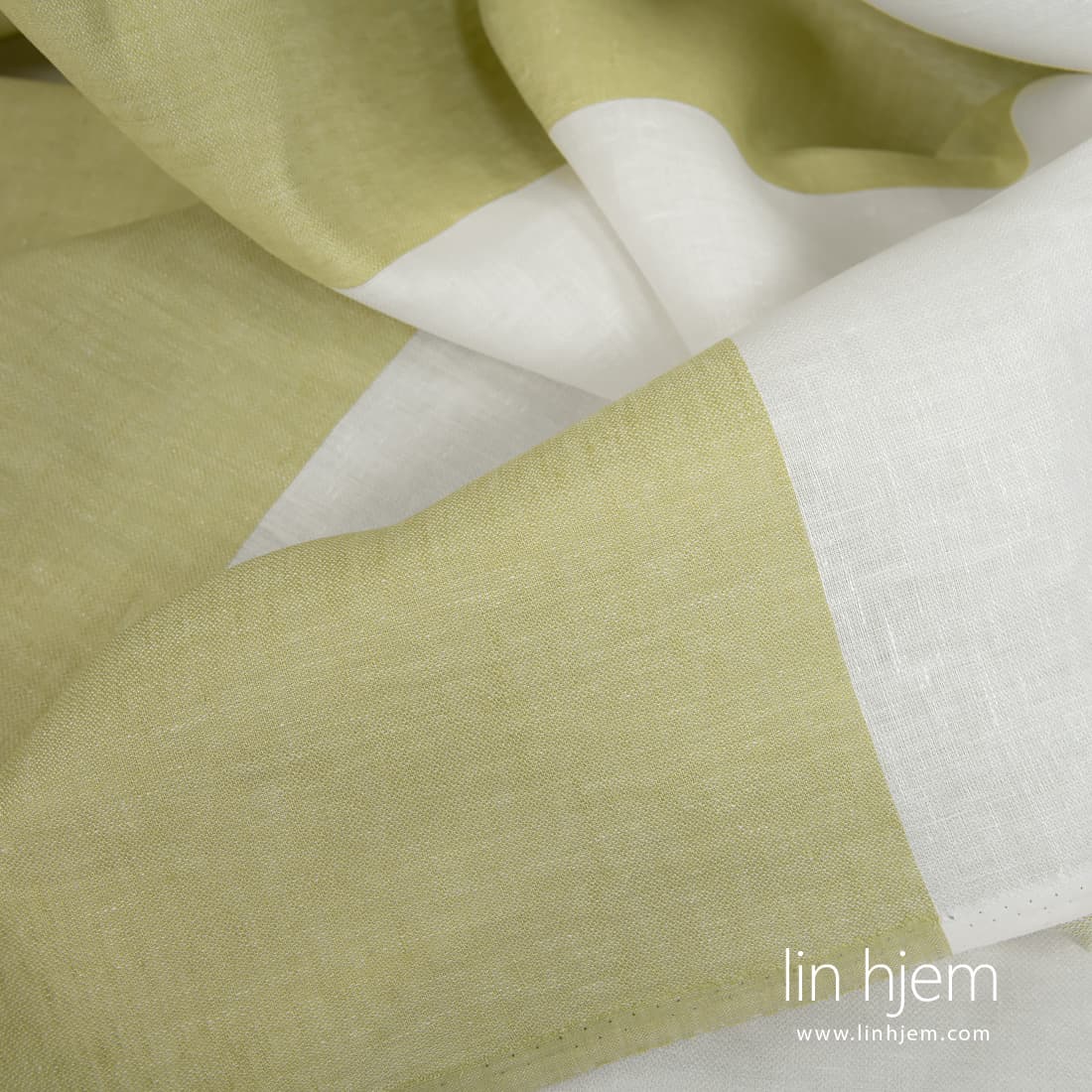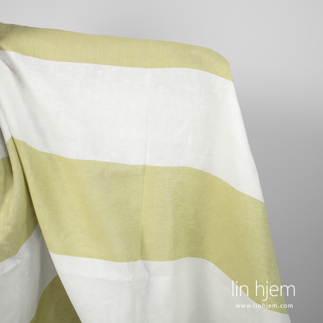 • Linstoff med grønne og hvite striper, 180cm bredt