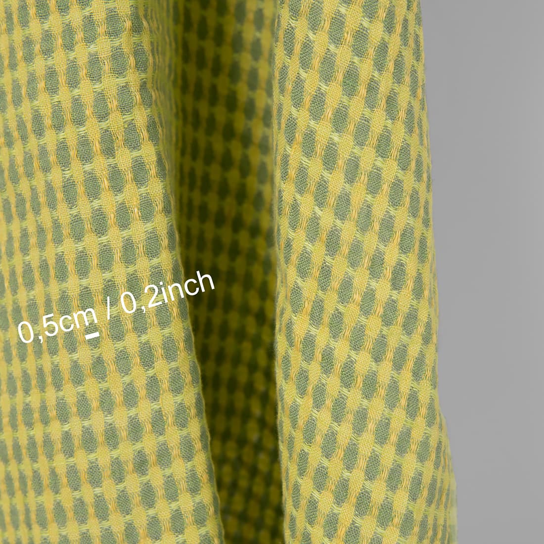 - Farge: gammelgrønn, lys banangul, gulgrønn og eplegrønn garn vevd