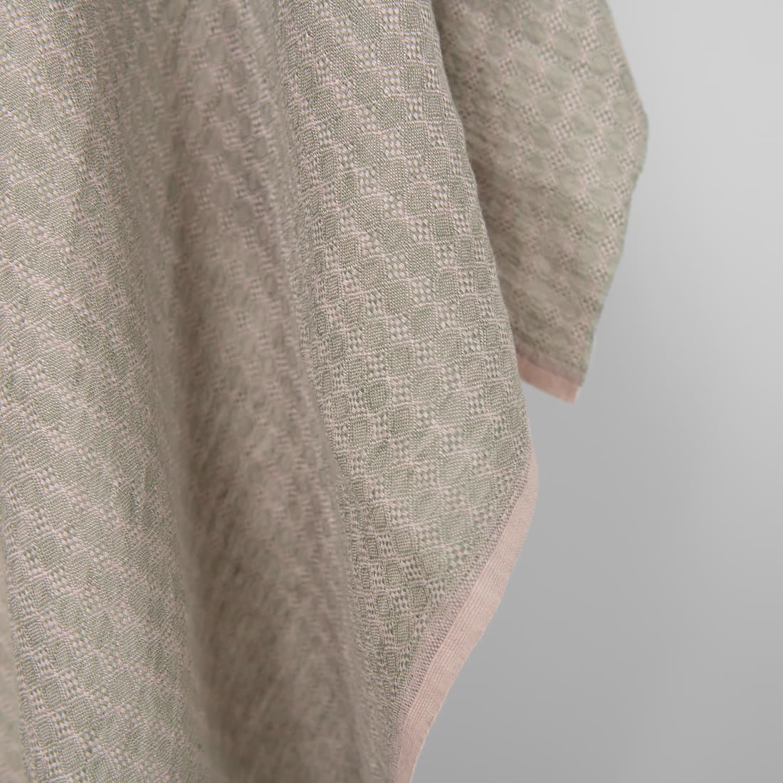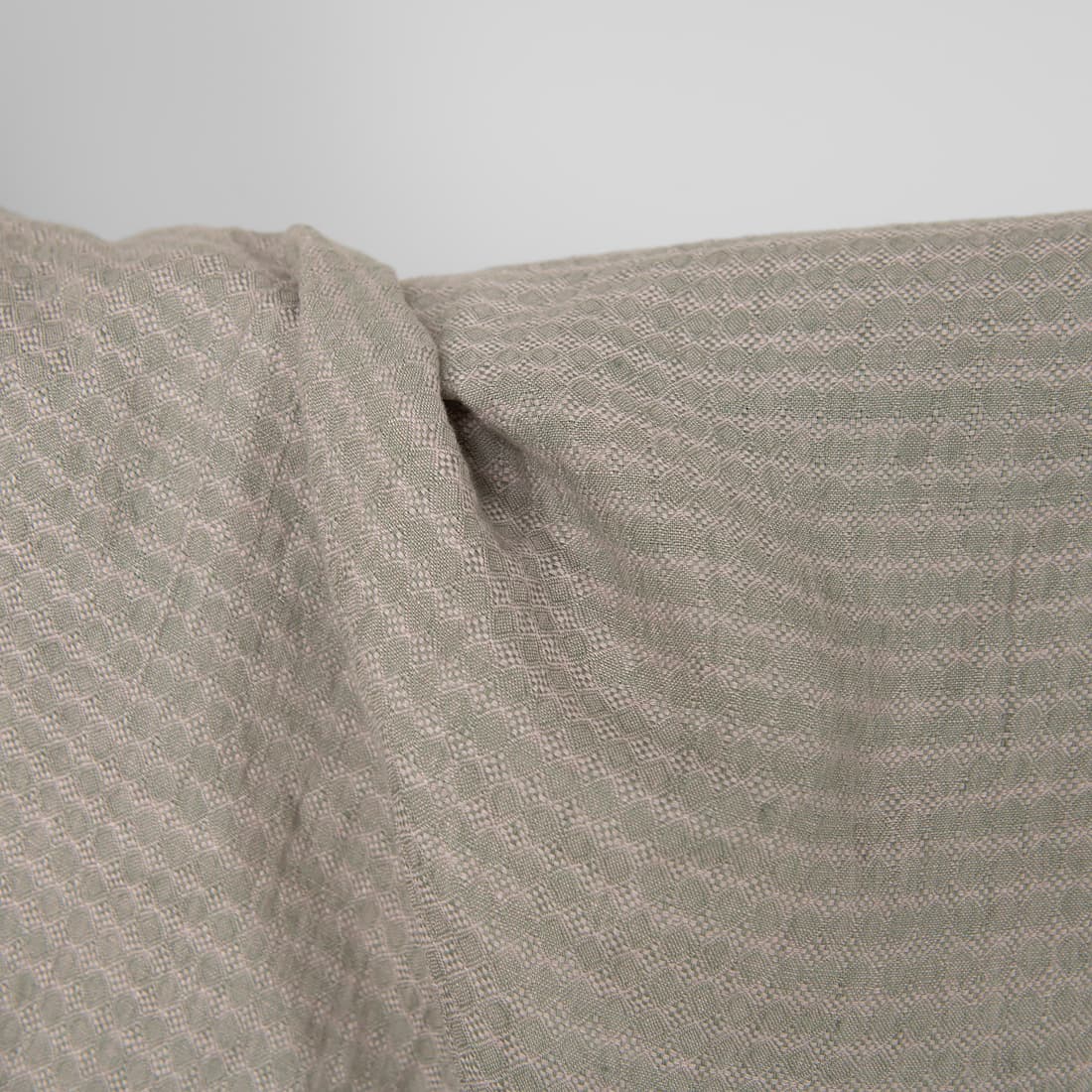 • Linstoff med diamantmønster, vevd gammelgrønt og lyslilla garn, vasket