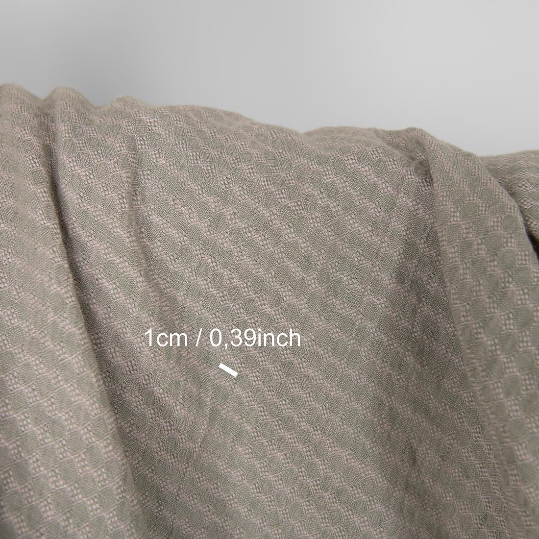 • Linstoff med lilla-grønt diamantmønster vasket, mykt, skånsomt