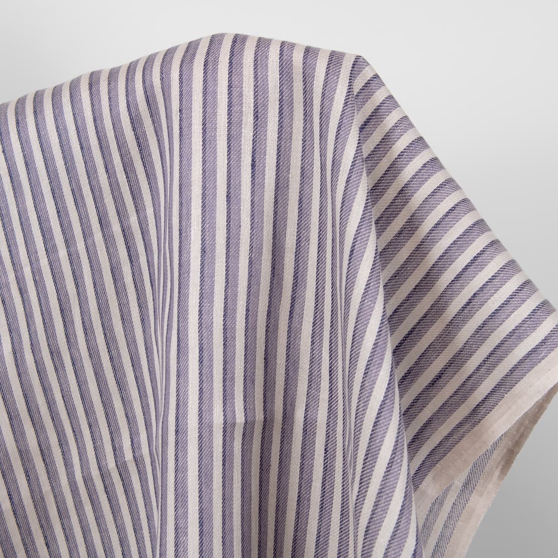 • Linstoff med lilla og blå striper for å sy klær og hjemmetekstiler