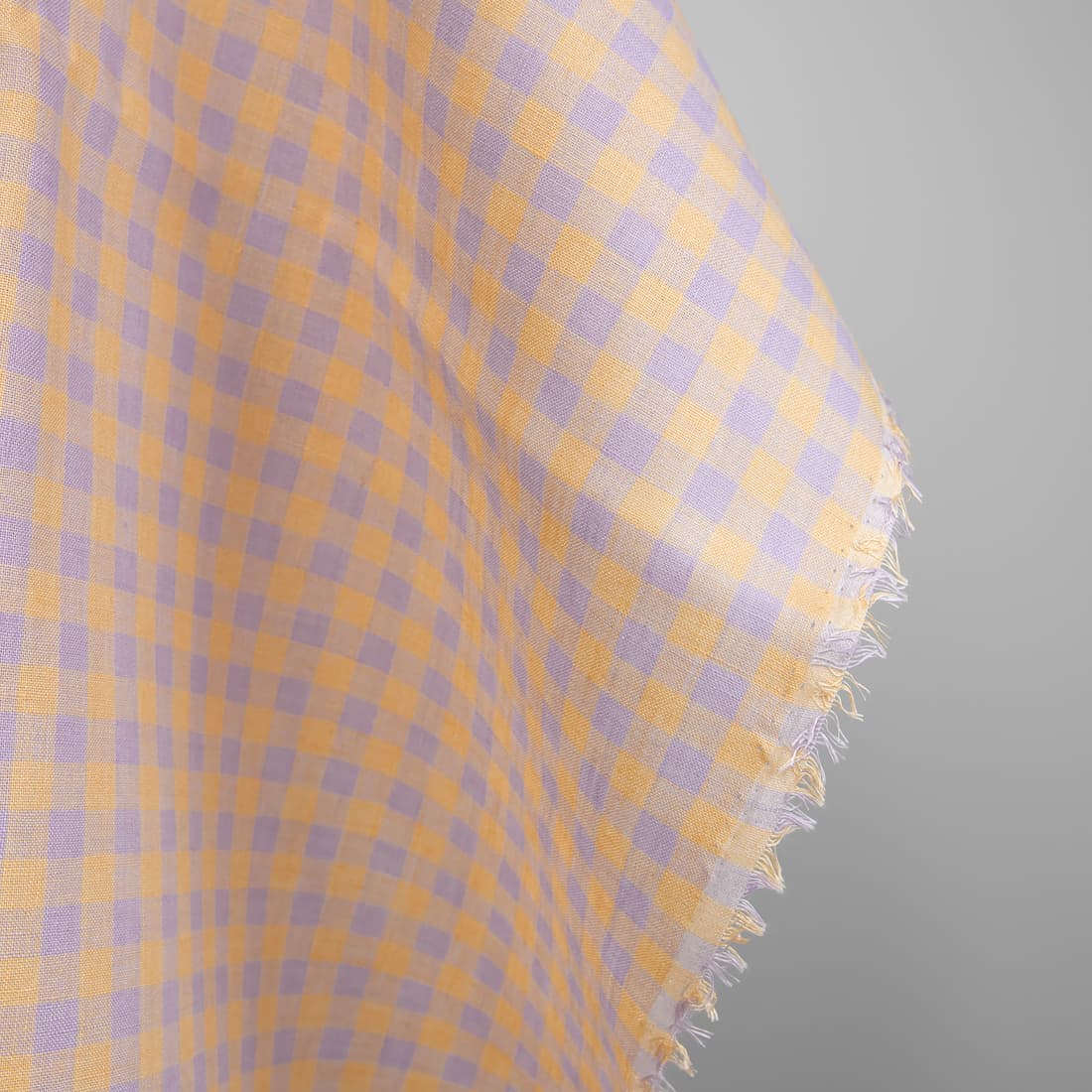 Linstoff med lilla og gult ruter