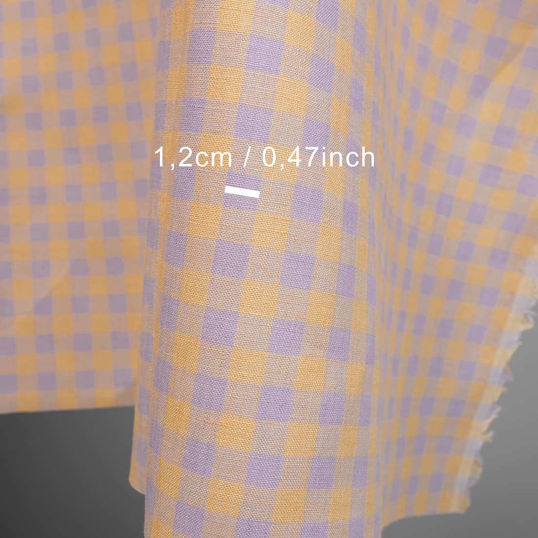 • Linstoff med lilla og gult ruter for å sy klær og hjemmetekstiler