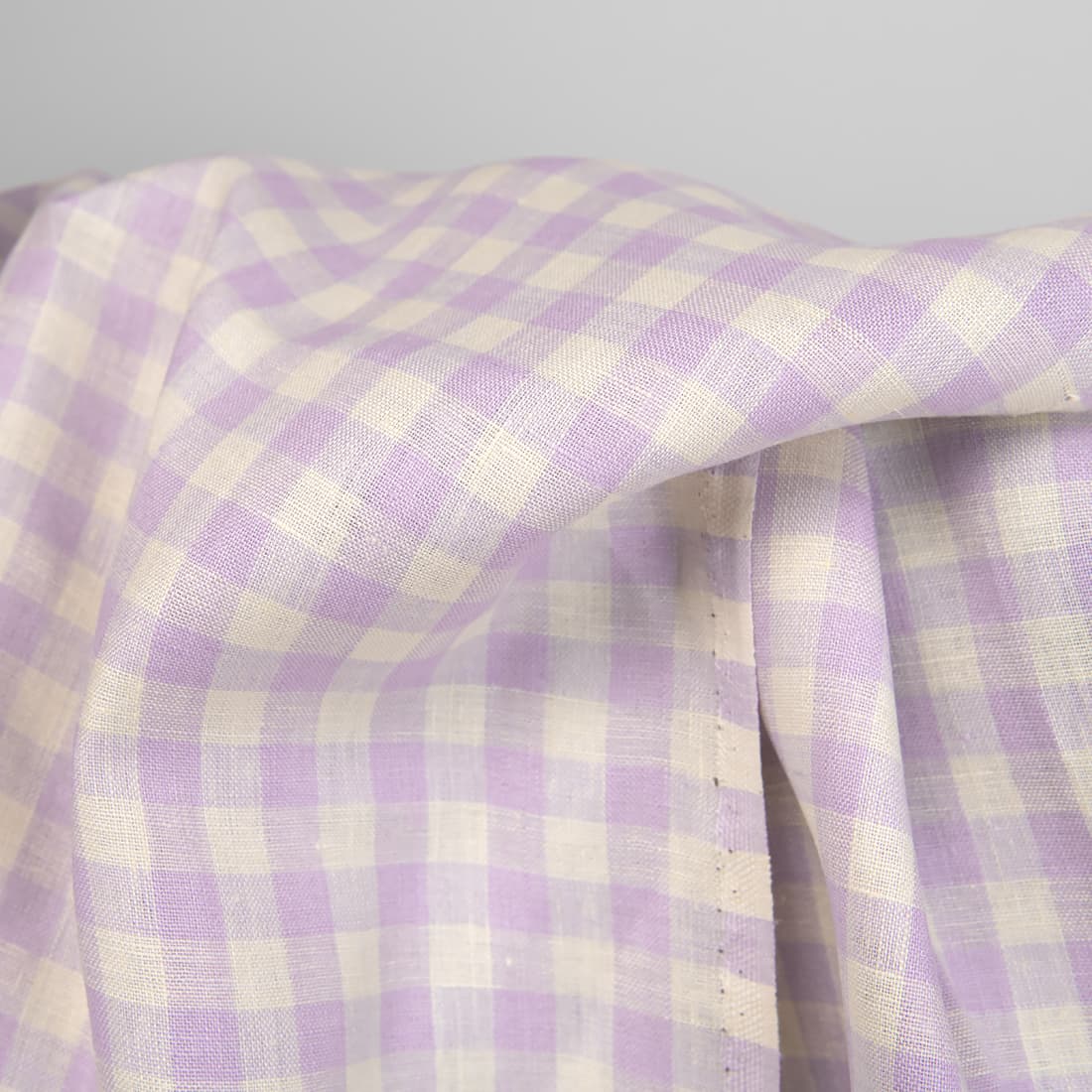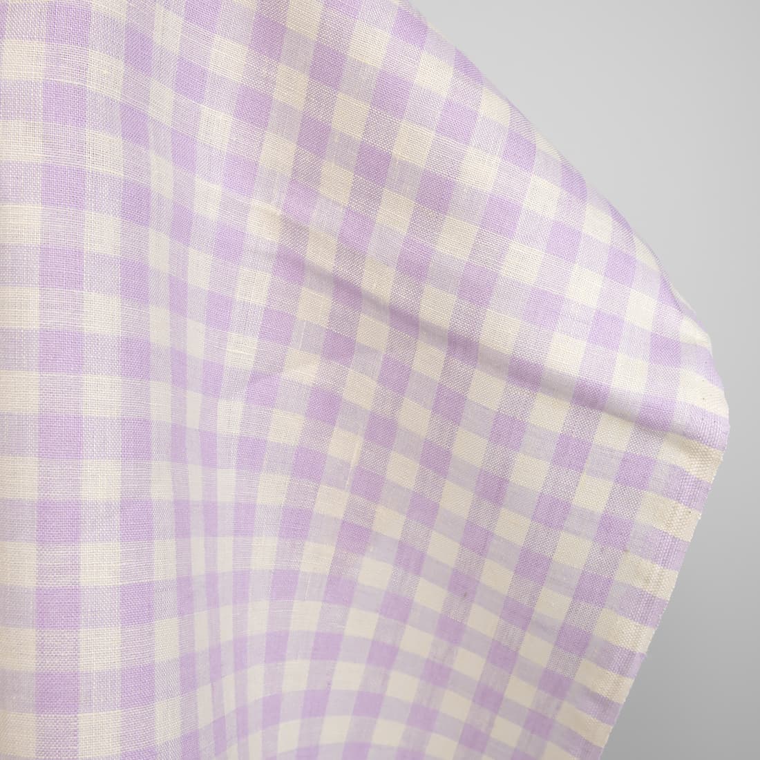 • Linstoff med lyse lilla ruter for å sy klær og hjemmetekstiler