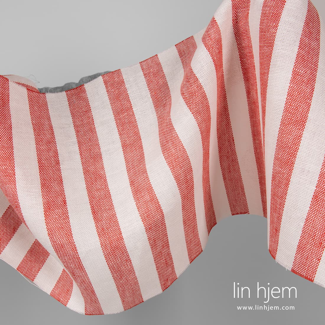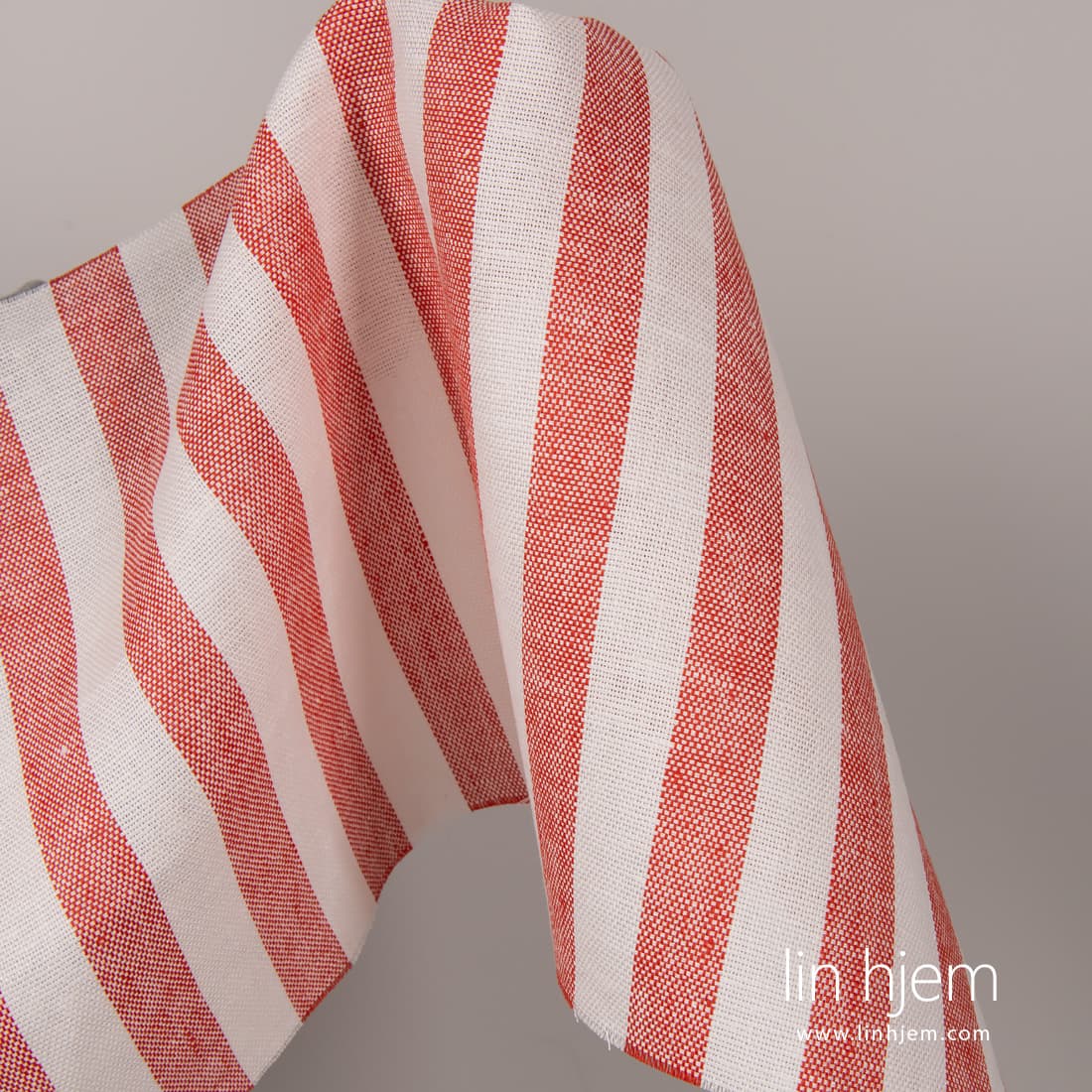 • Linstoff med røde striper.