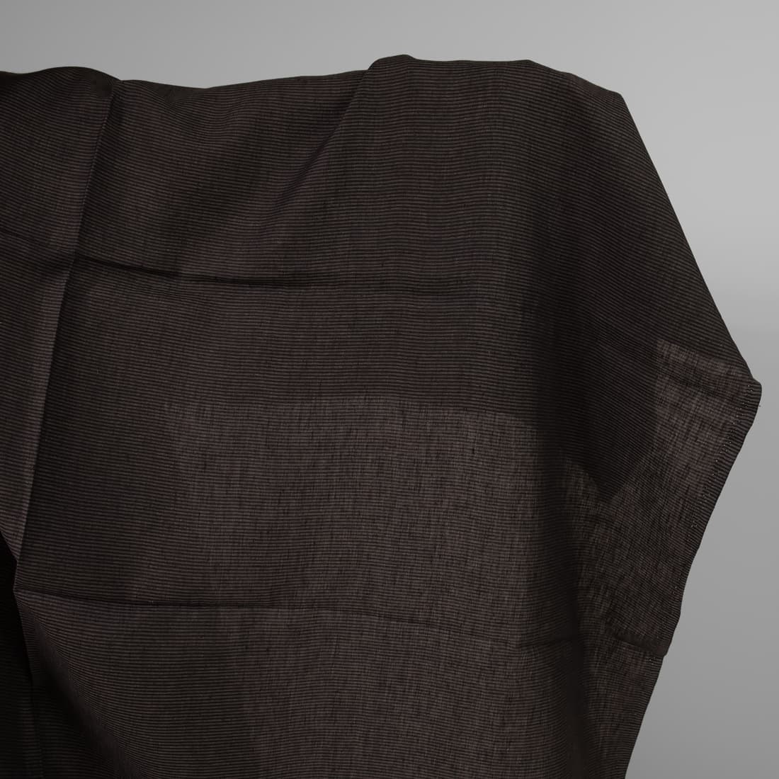 • Linstoff med svarte og brungrå striper for klær, hjemmetekstiler