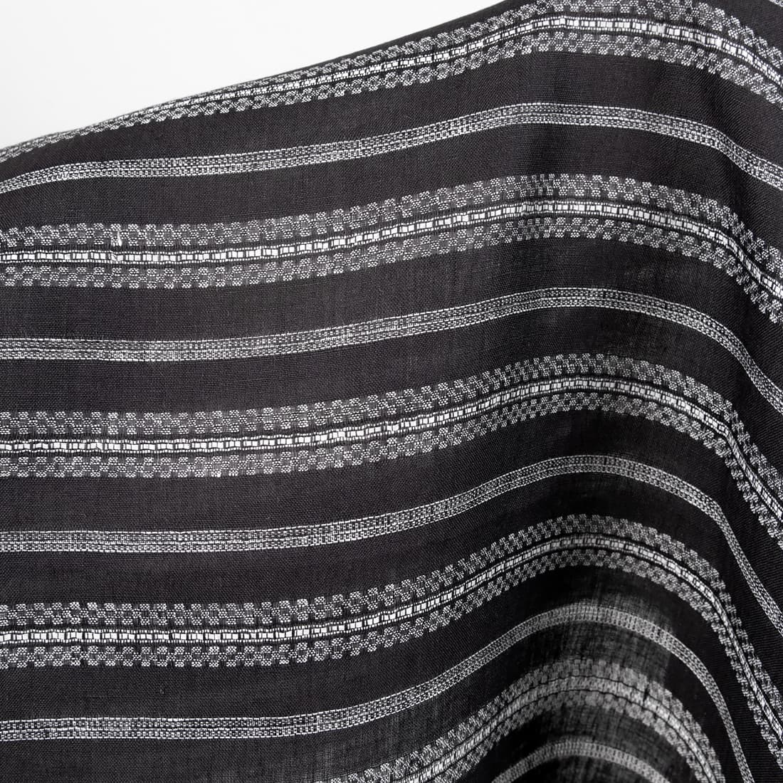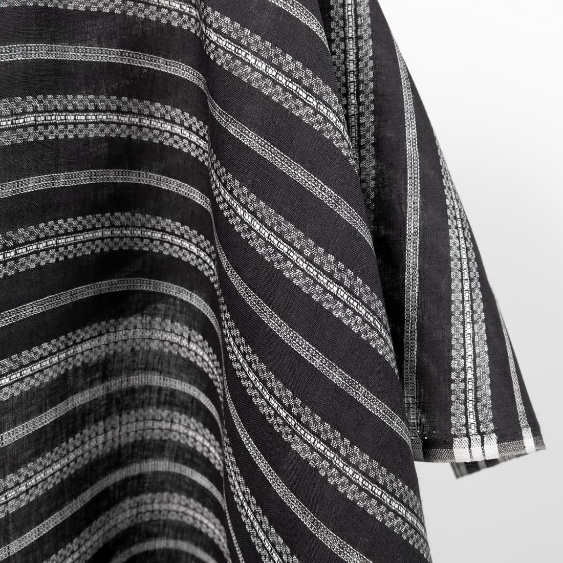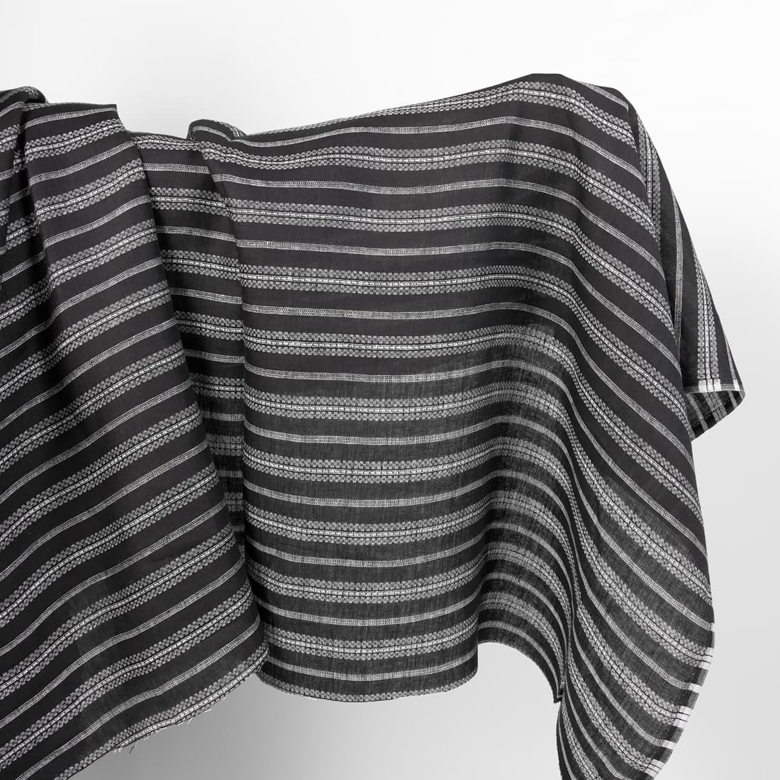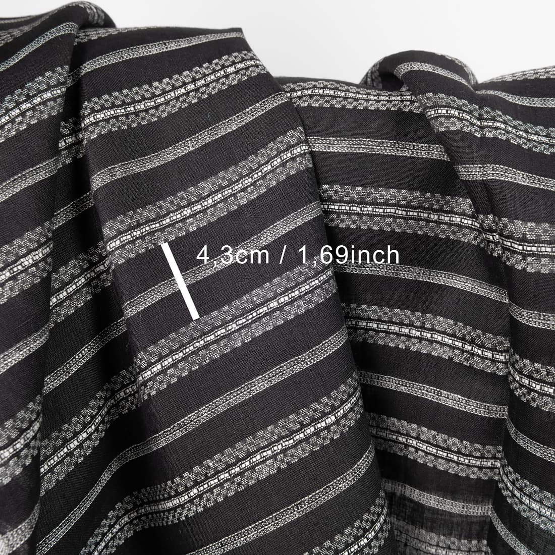 • Lett linstoff med svarte og hvite mønstrete striper for å sy klær og hjemmetekstiler
