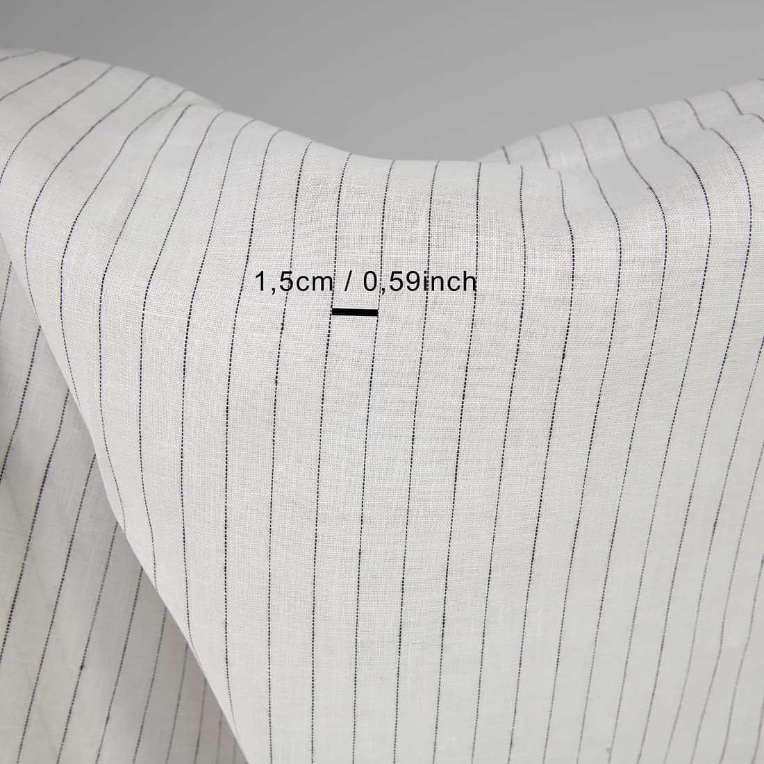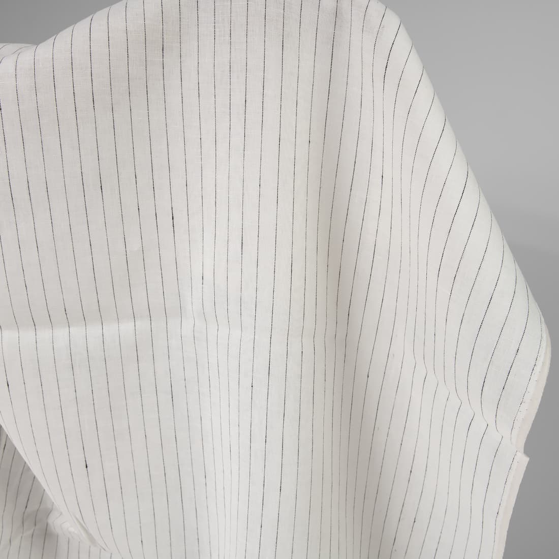 • Linstoff melkehvitt med svarte striper til klær, hjemmetekstiler