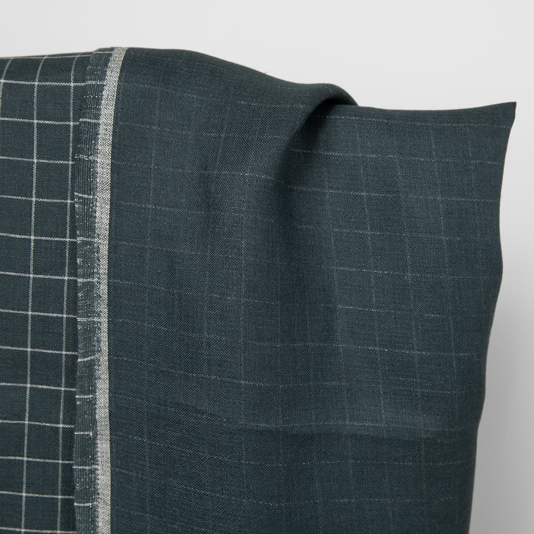 • Linstoff mørkeblått rutete tosidig for sying klær, hjemmetekstiler