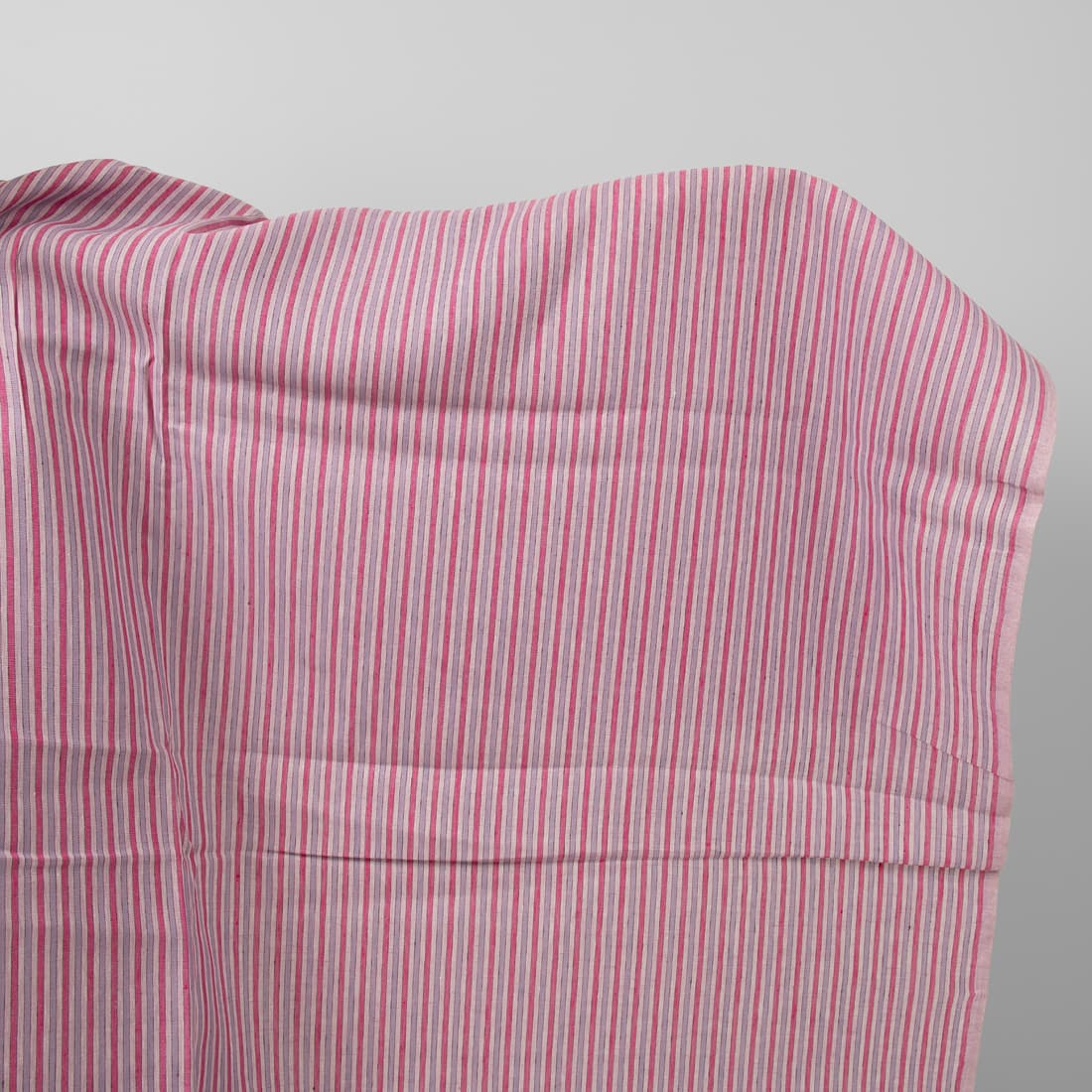 • Linstoff rosa-lilla stripete for å sy klær og hjemmetekstiler