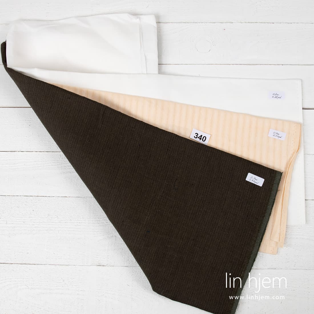 Linstoff sett av 100% lin. 4,2 m total lengde. 3 stykker. Bredde av hvert stoff: 150cm. Lengde av hvert stoff: