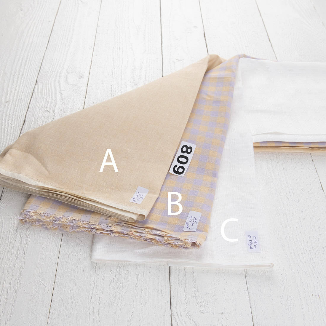 • Lengde av hvert stoff: A - 1,5 m, B - 1,5 m, C - 0,8 m
