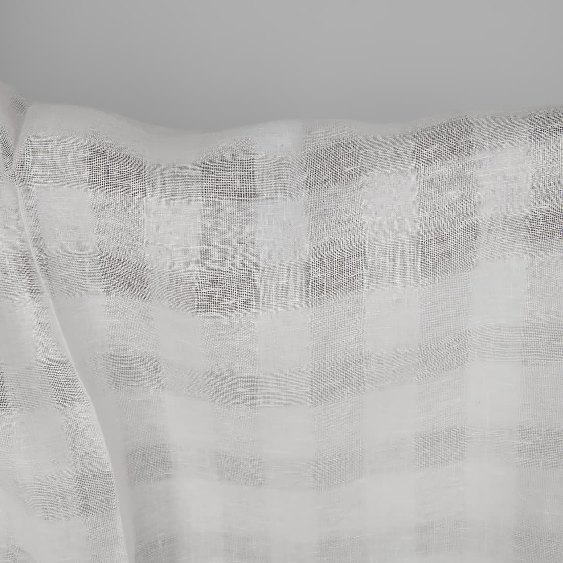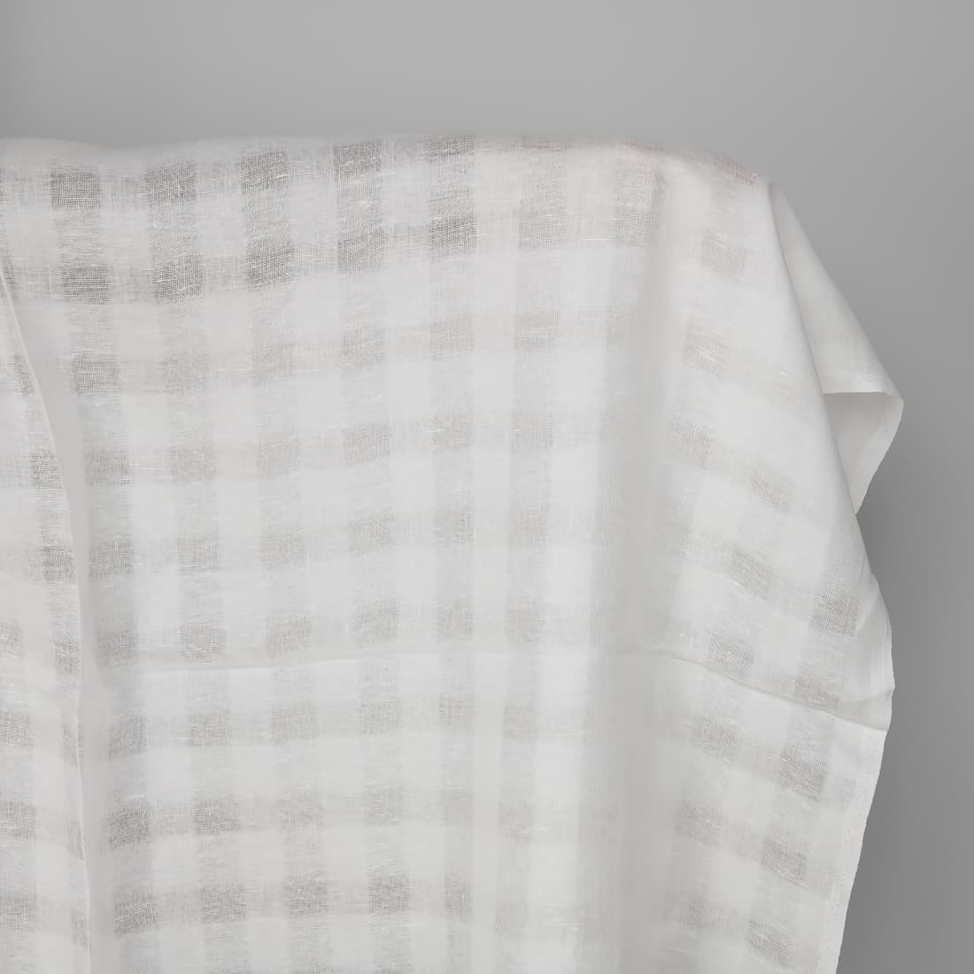 • Linstoff snøhvit, tett og åpent vevd (gjennomsiktig) rutemønster