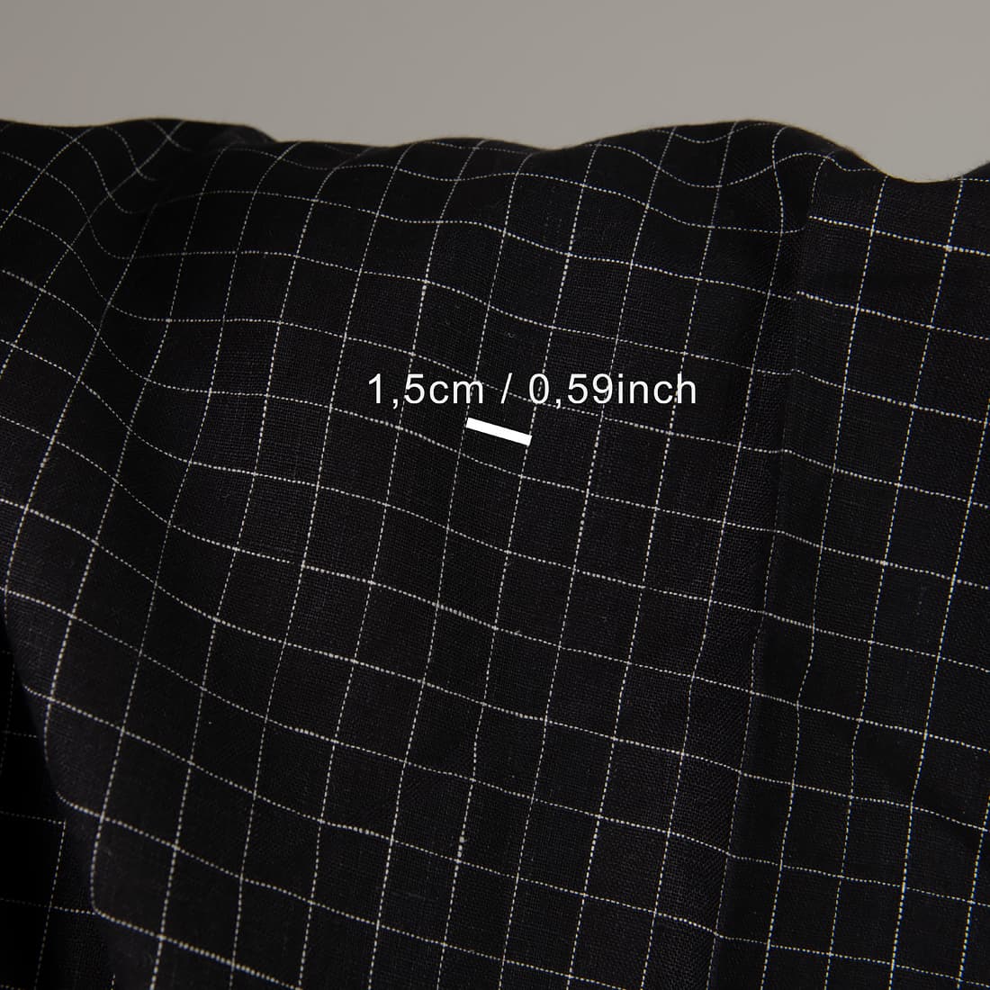 • Linstoff svart med hvite ruter til klær, hjemmetekstiler