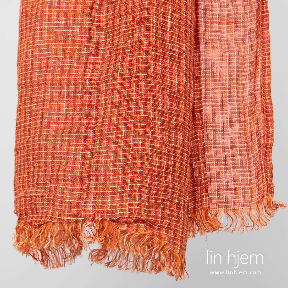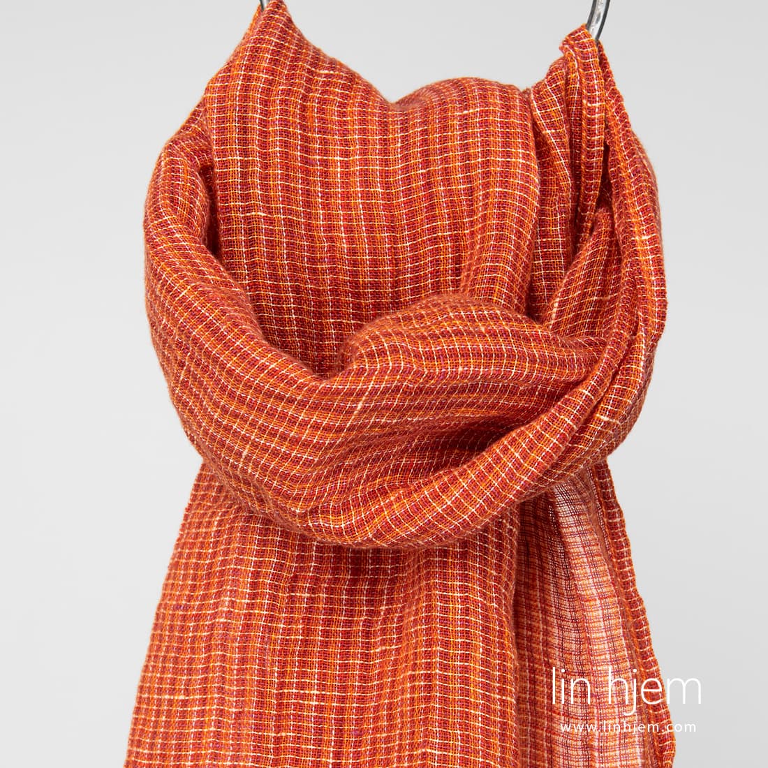 - Lin oransje sjal i små ruter.