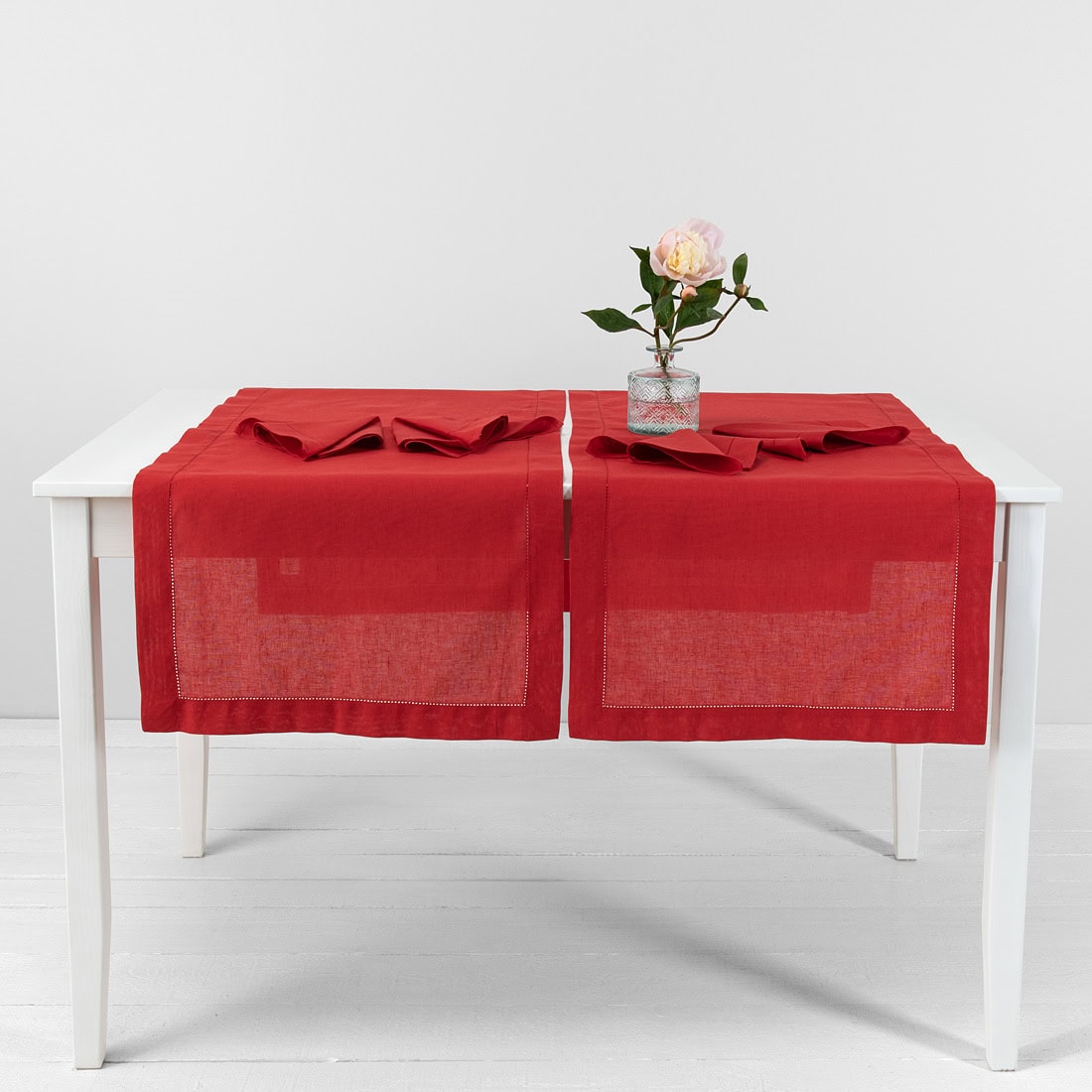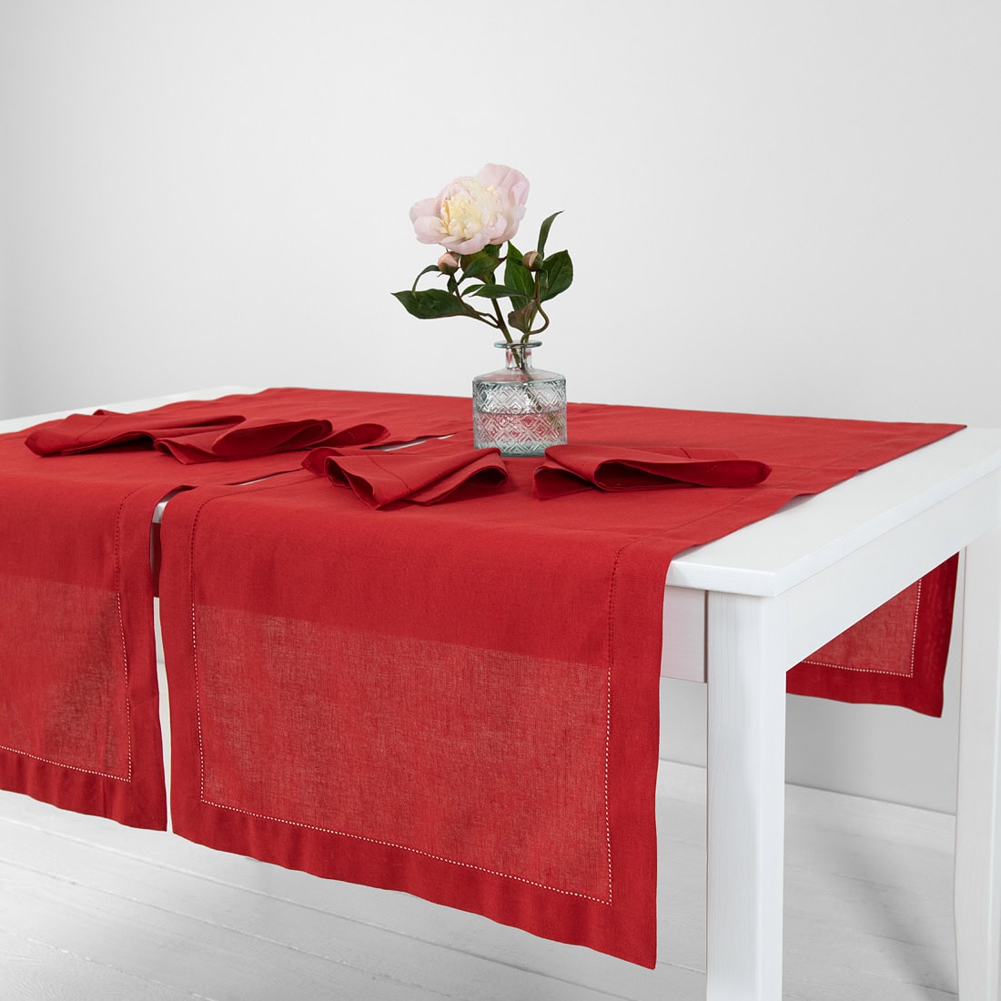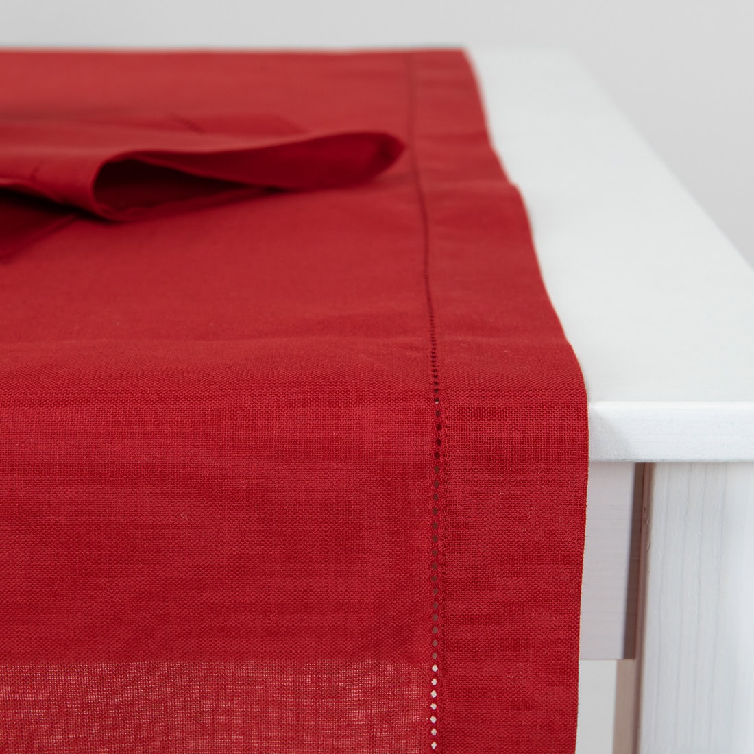 • Halvlin bordløper rød med 4cm brettet kant, hullmønster