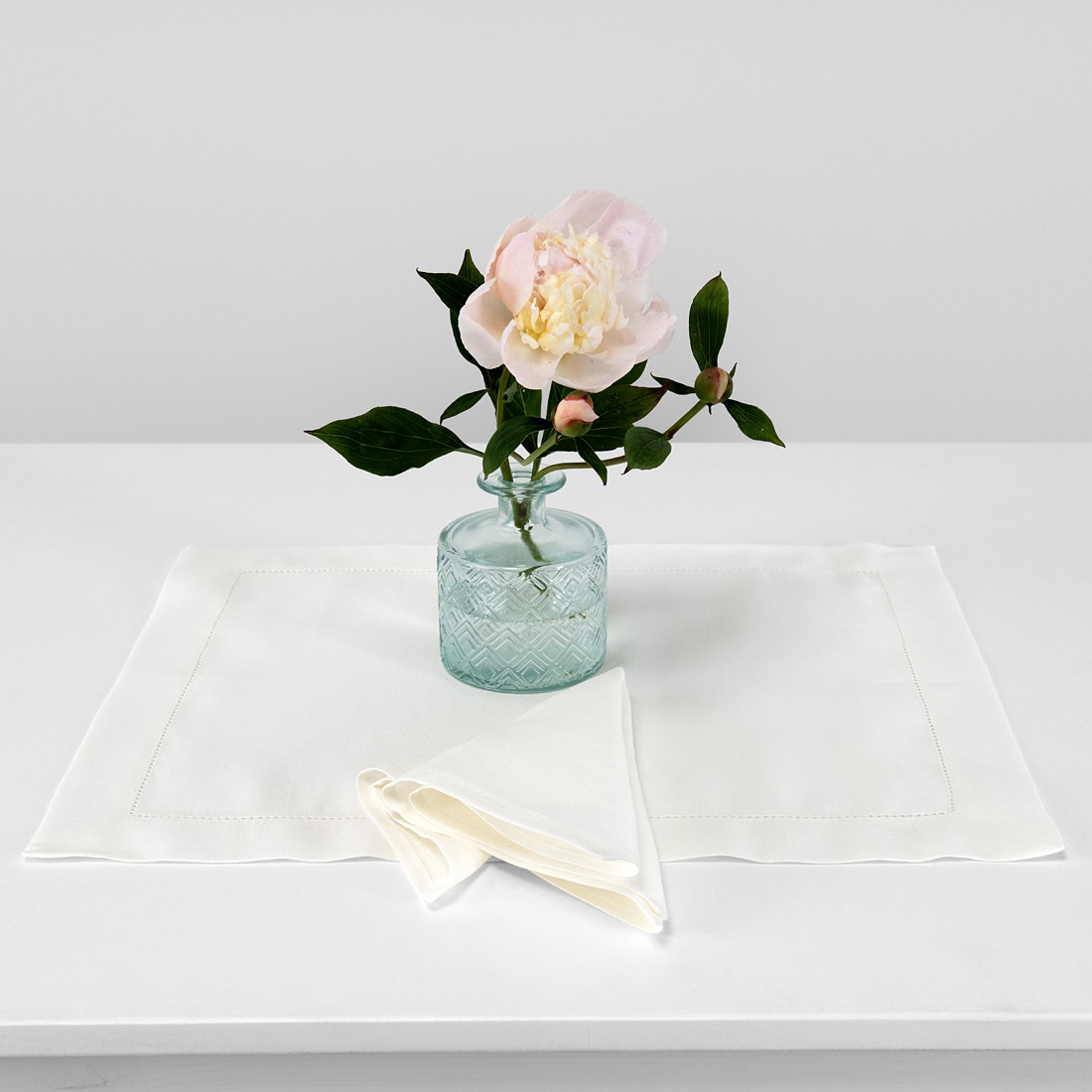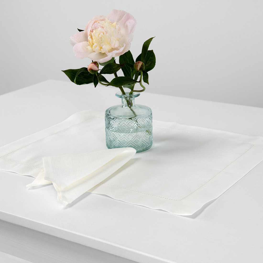 • LUNA halvlin dekkebrikke melkehvit med 4cm brettet kant