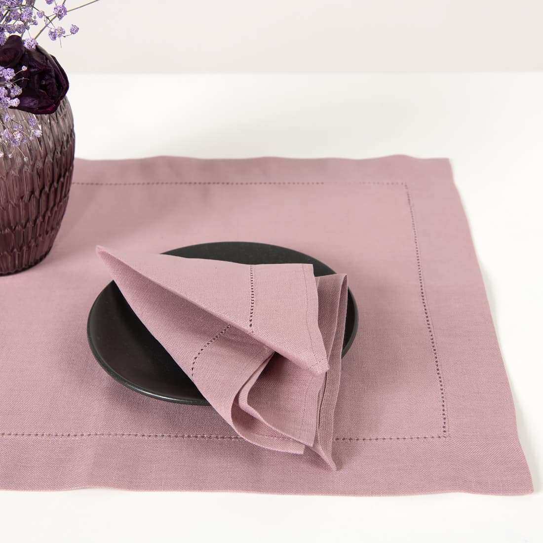 • Lin-bomull dekkebrikke syrin med 4cm brettet kant og hullmønster