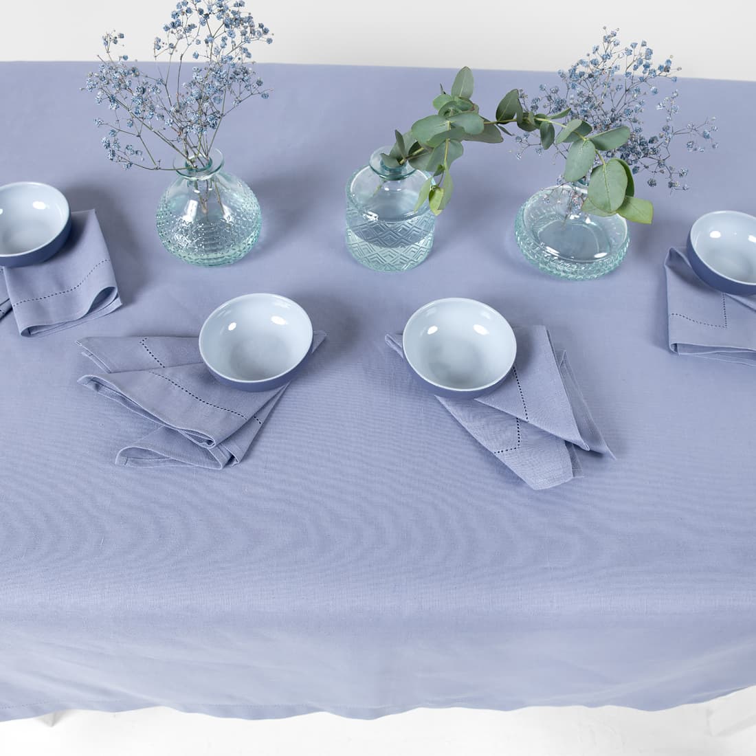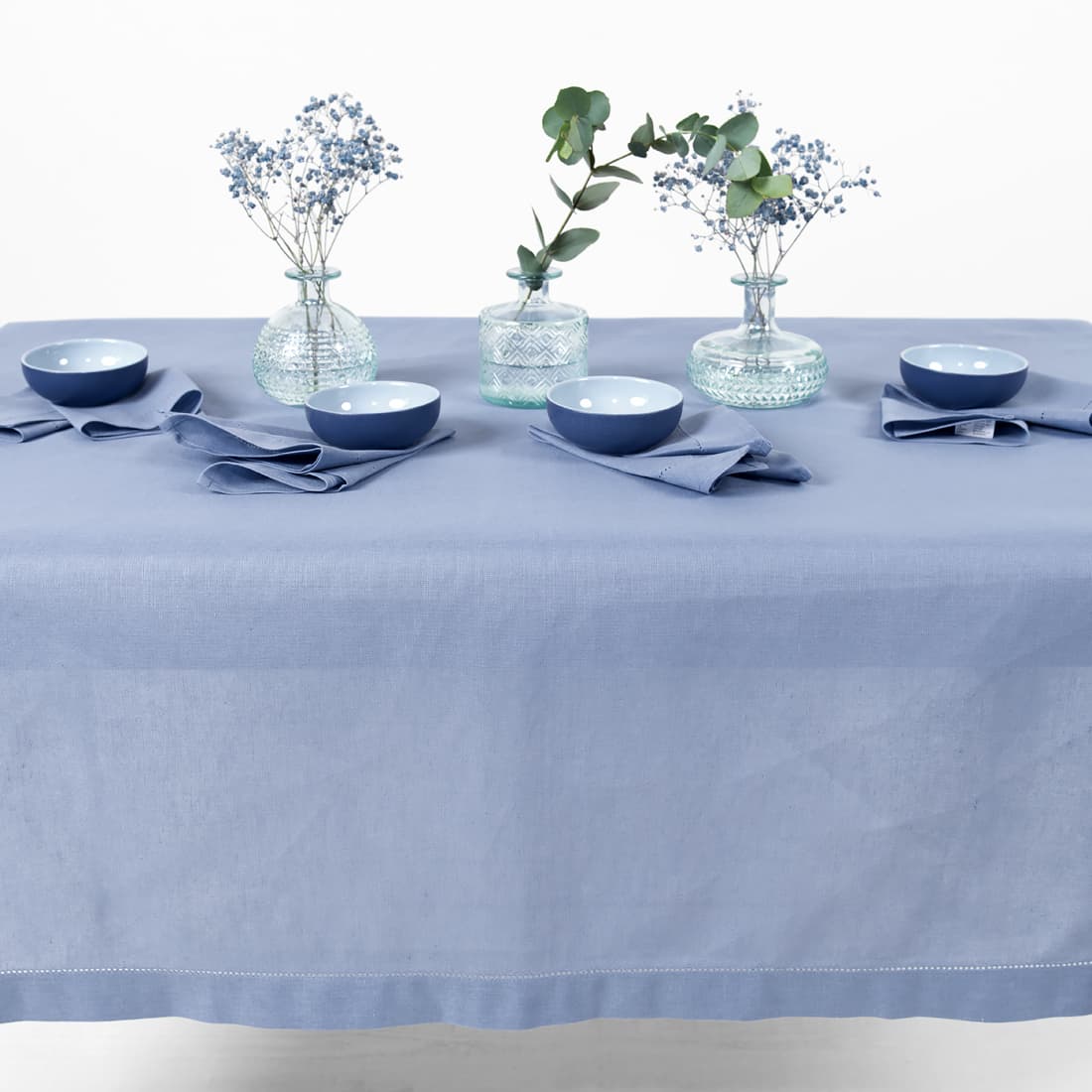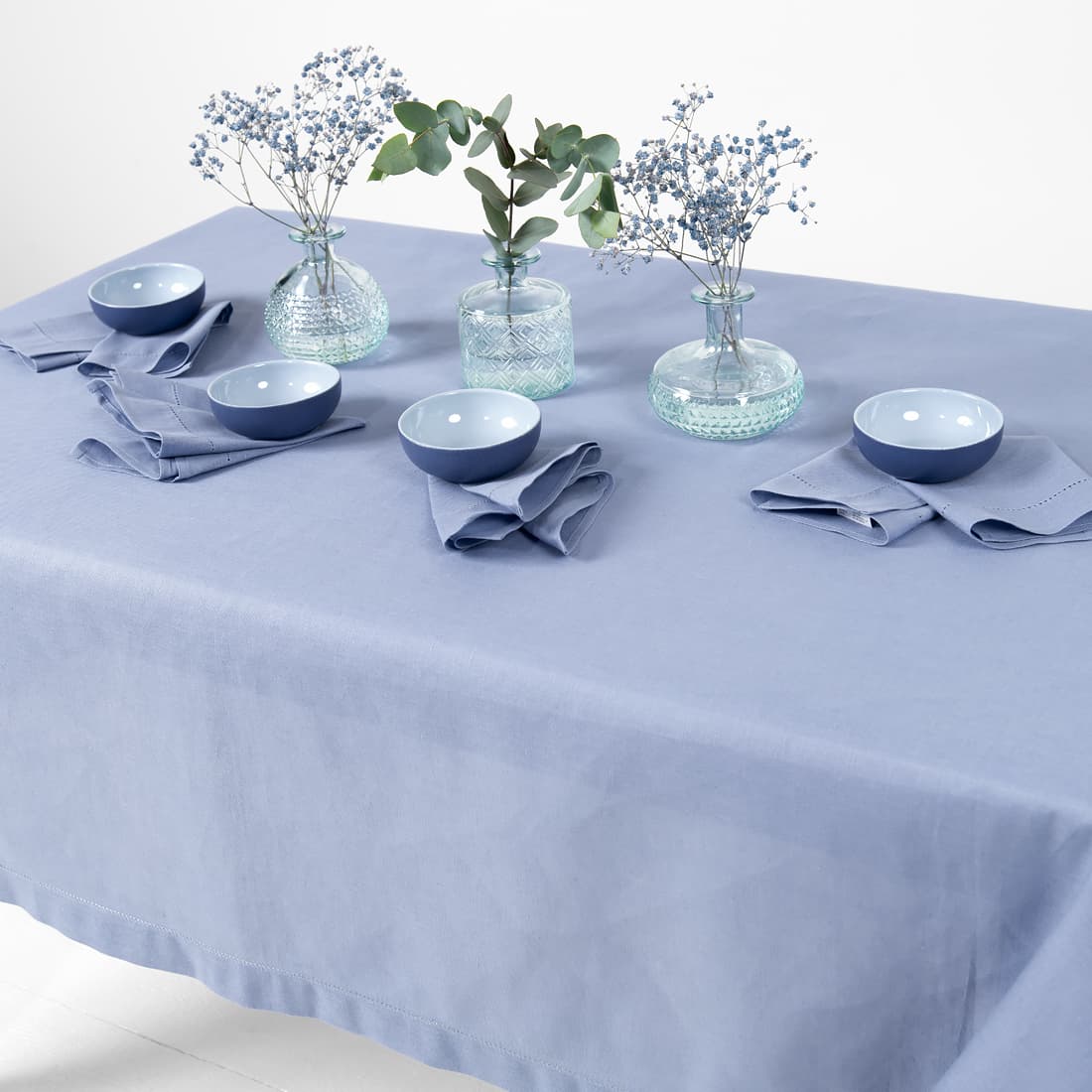 • Himmelblå duk med hullmønster av lin-bomull stoff