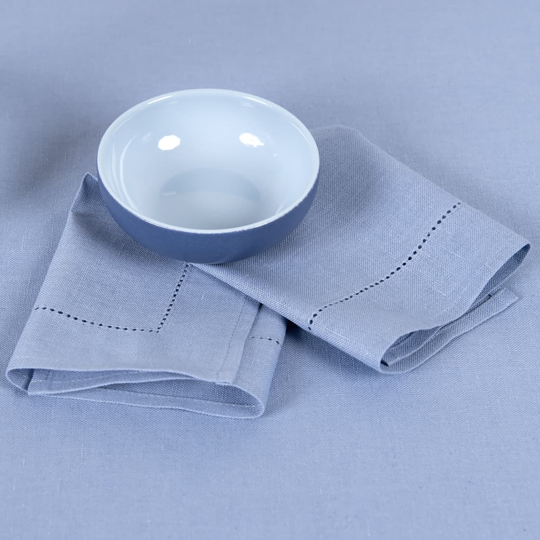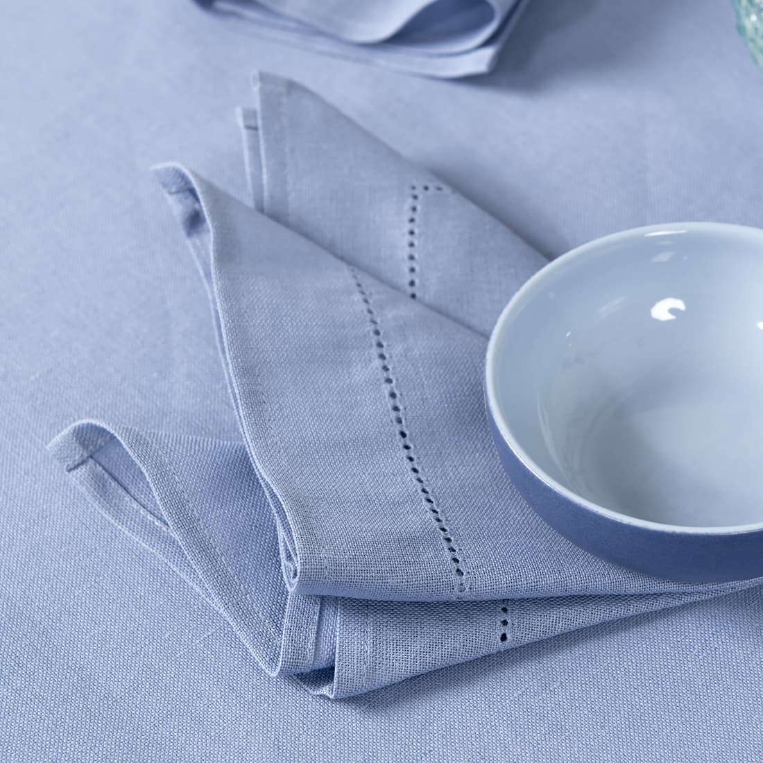 • Himmelblå lin-bomull serviett med hullmønster
