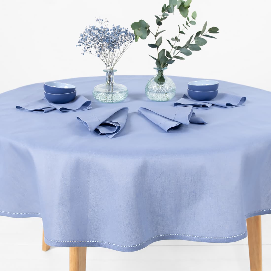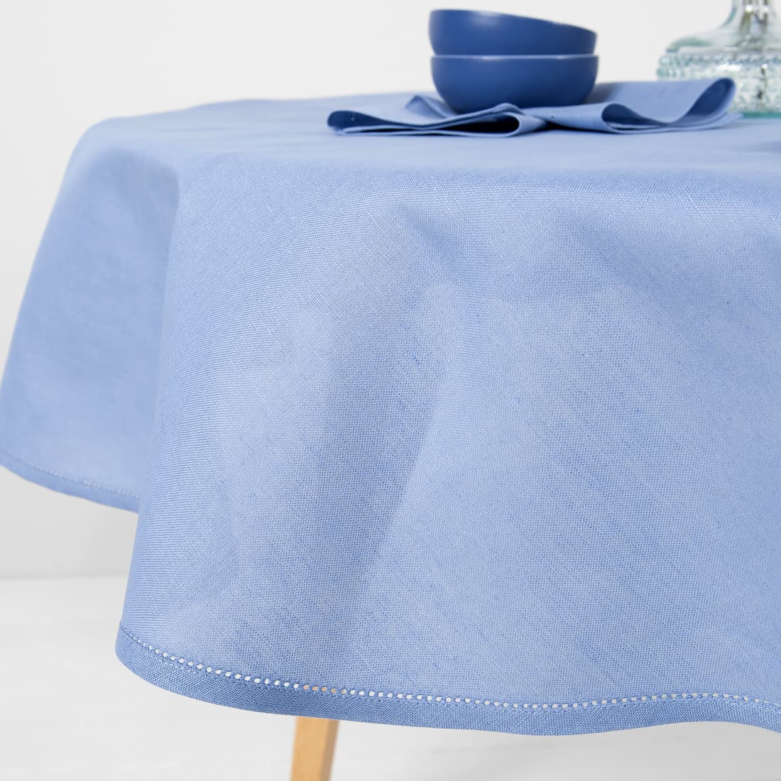 • LUNA rund (oval) himmelblå lin-bomull duk