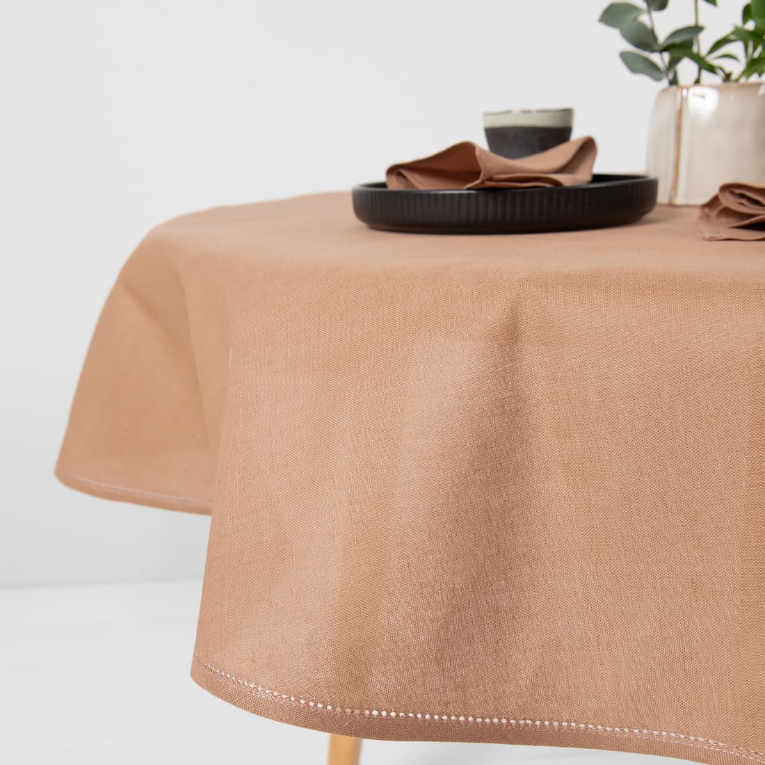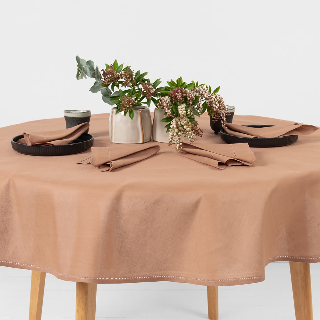 • LUNA rund (oval) lysebrun lin-bomull duk