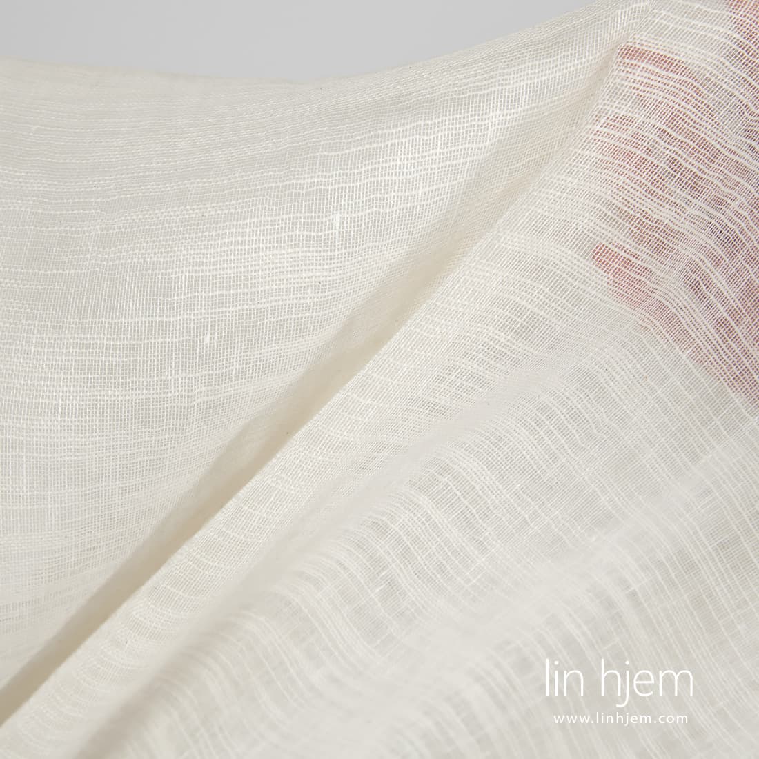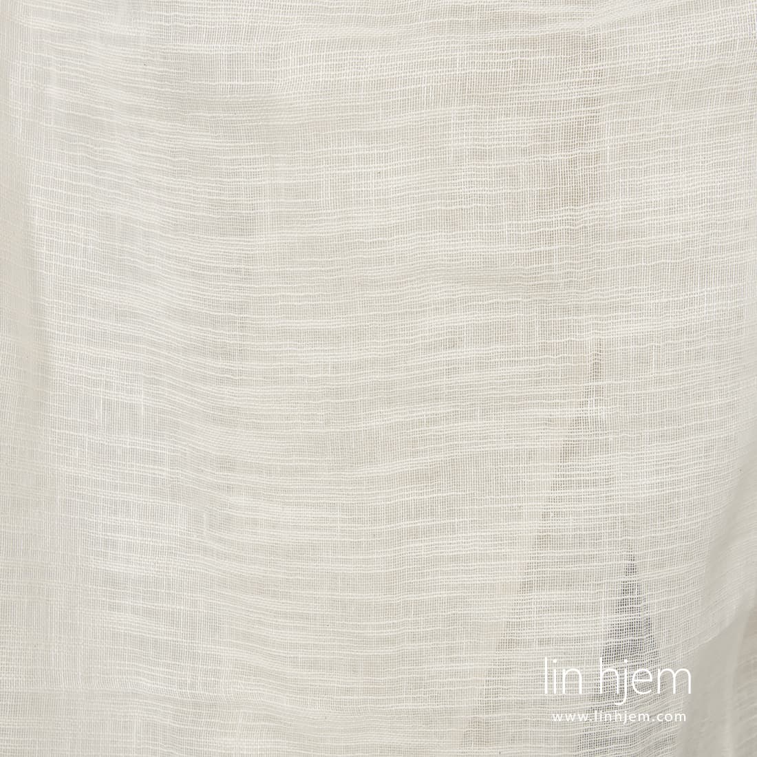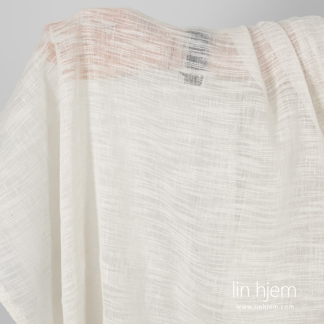Melkehvitt løstvevd stripete stoff. Lett, løstvevd, gjennomsiktig lil-bomulls stoff som passer perfekt til å sy gardiner, skjerf.