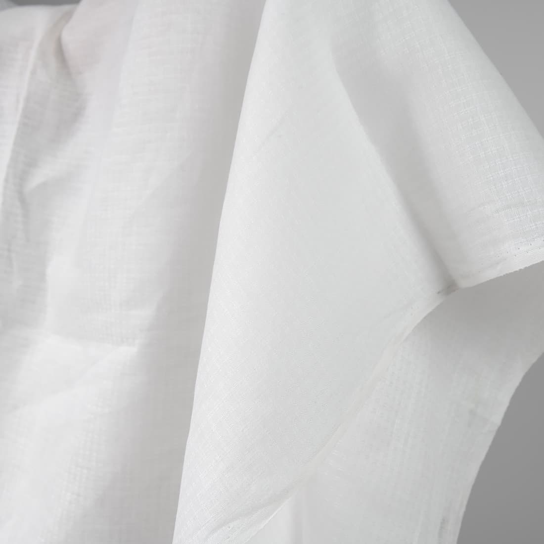 • Melkehvitt mønstret linstoff med strukturelle ruter