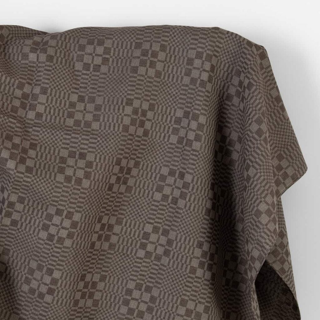 Lin bomull stoff mørkebrun og beige kyper ruter