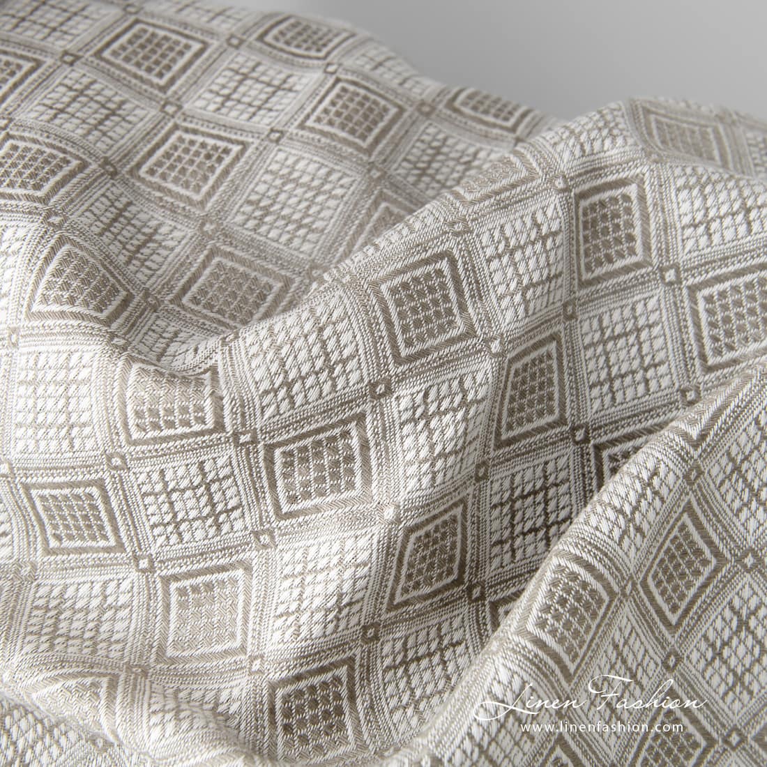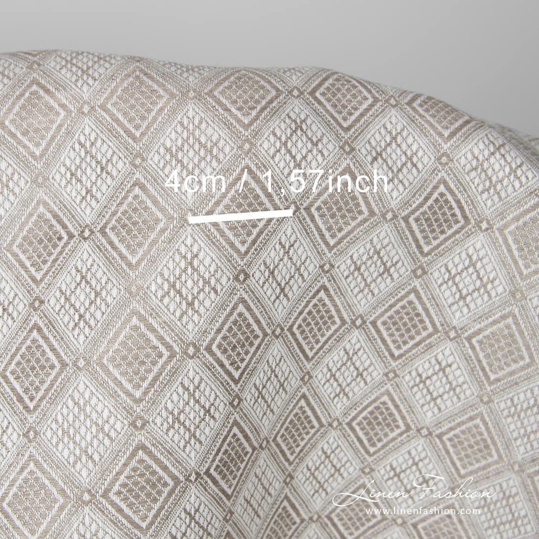 Lin bomull kraftig stoff lilla og brun sikksakk