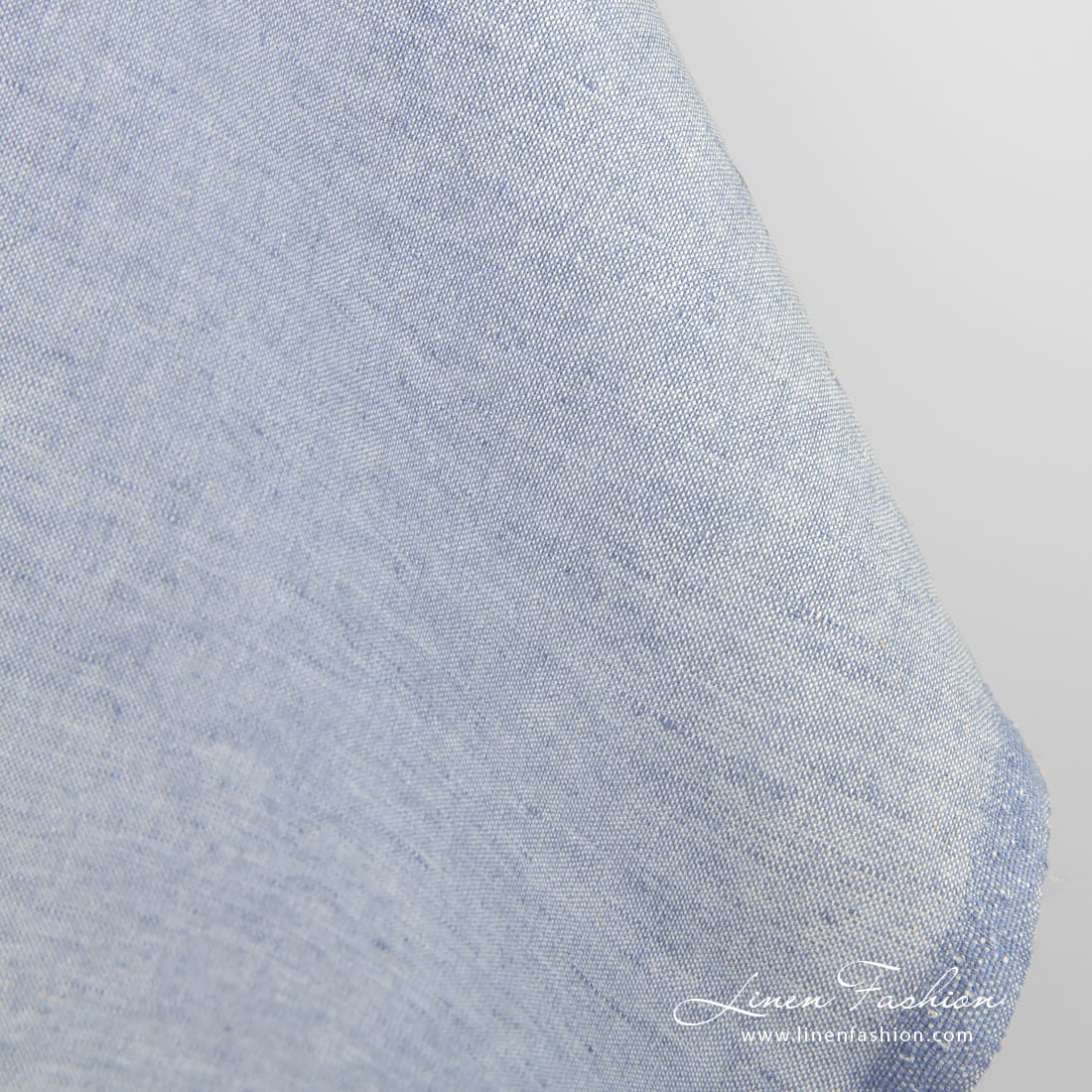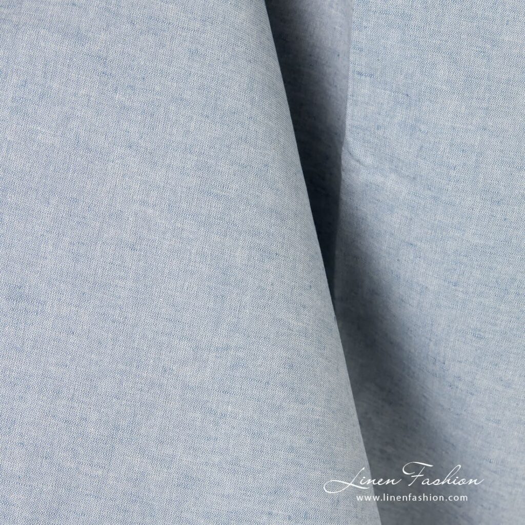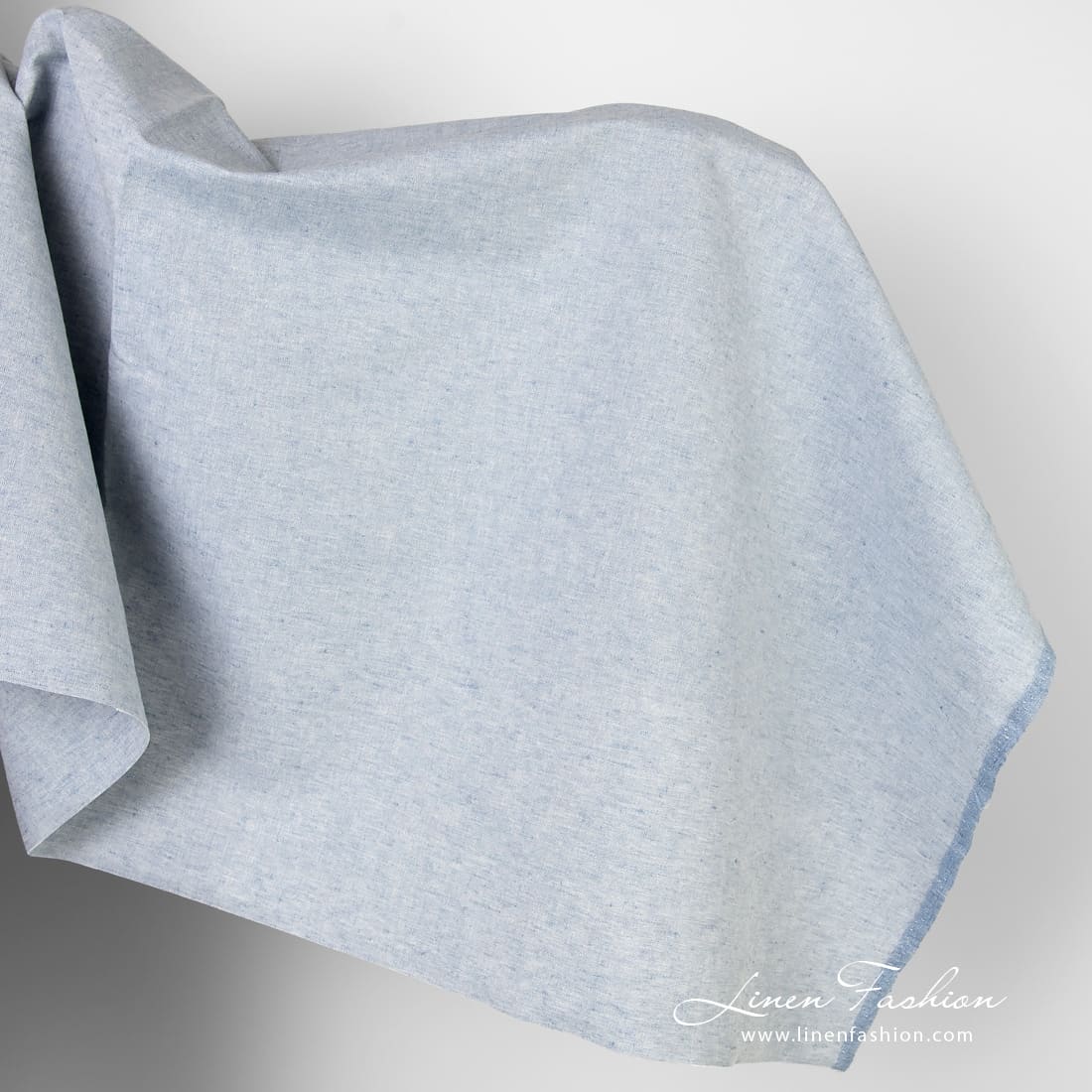 Lin-bomullsstoff blå og grå jacquard sølv lurex