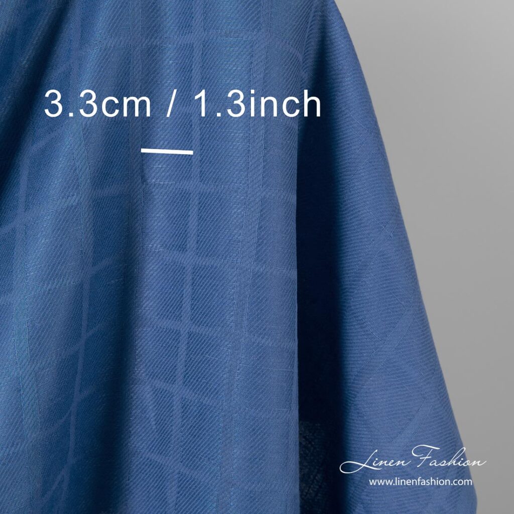 Lin-bomullsstoff lysegrå med klare røde ruter