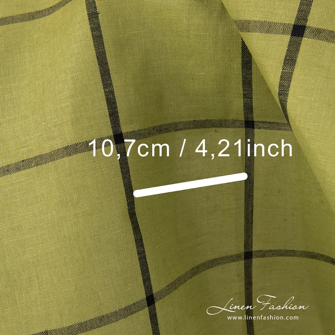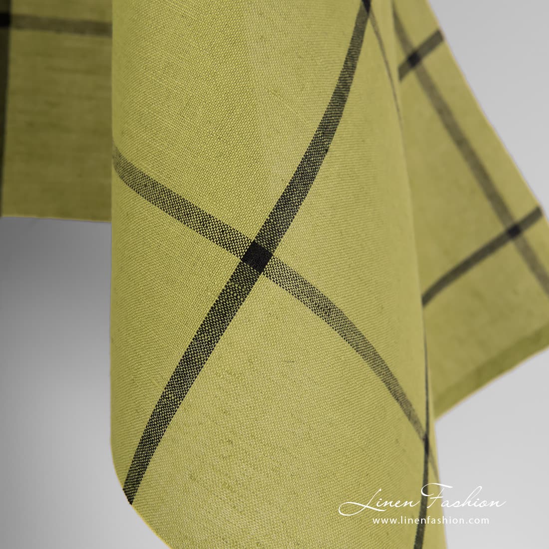 Lysegrønt lin-bomullsstoff med svarte ruter