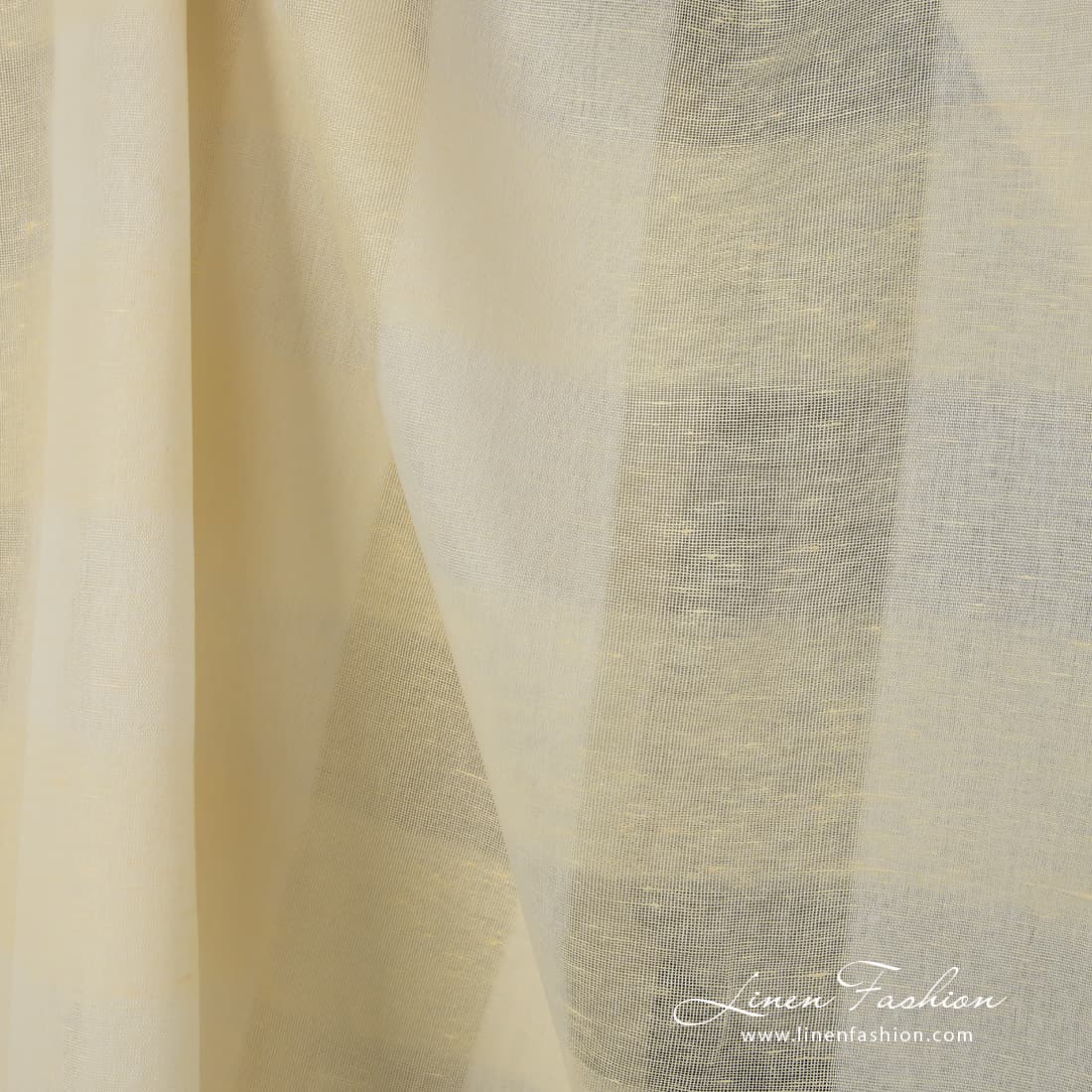 Lysegult lin-bomullsstoff med ruter i åpen vev