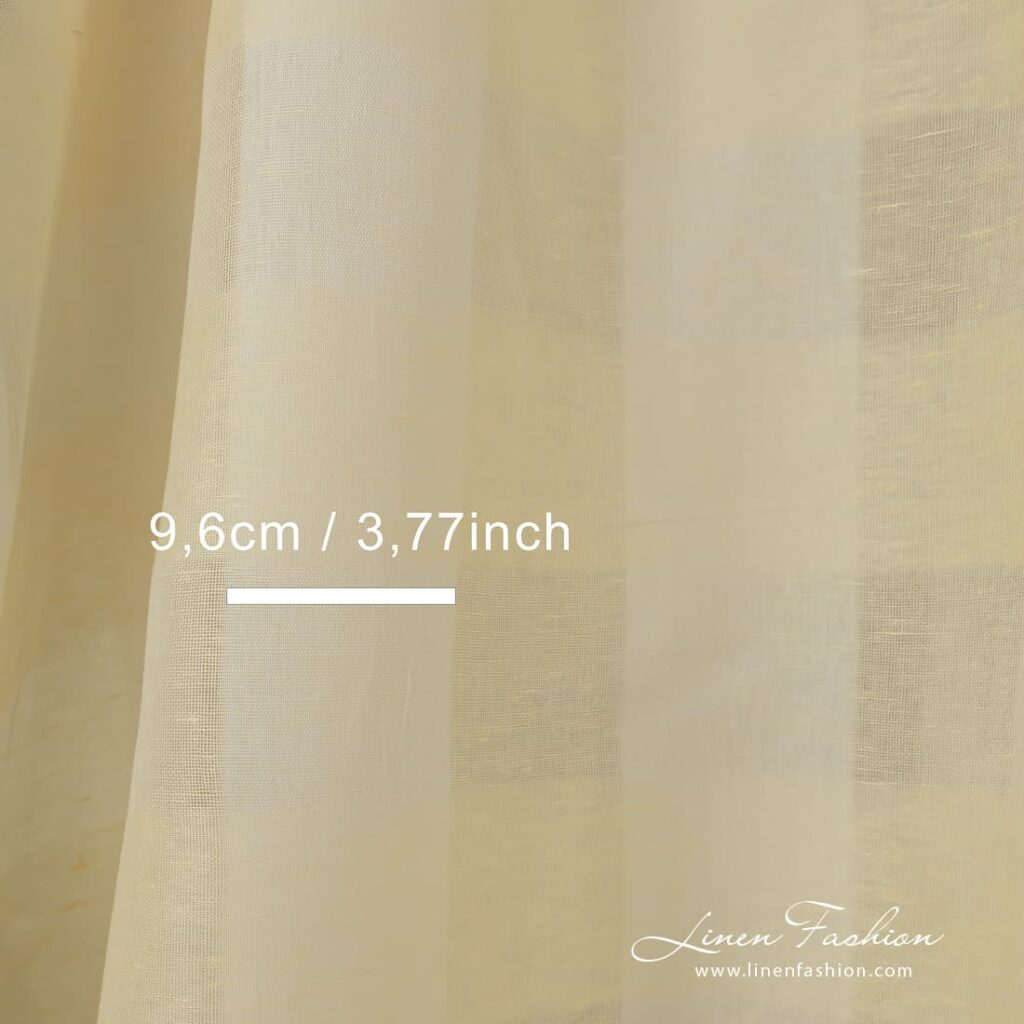 Lysegult lin-bomullsstoff med ruter i åpen vev antall