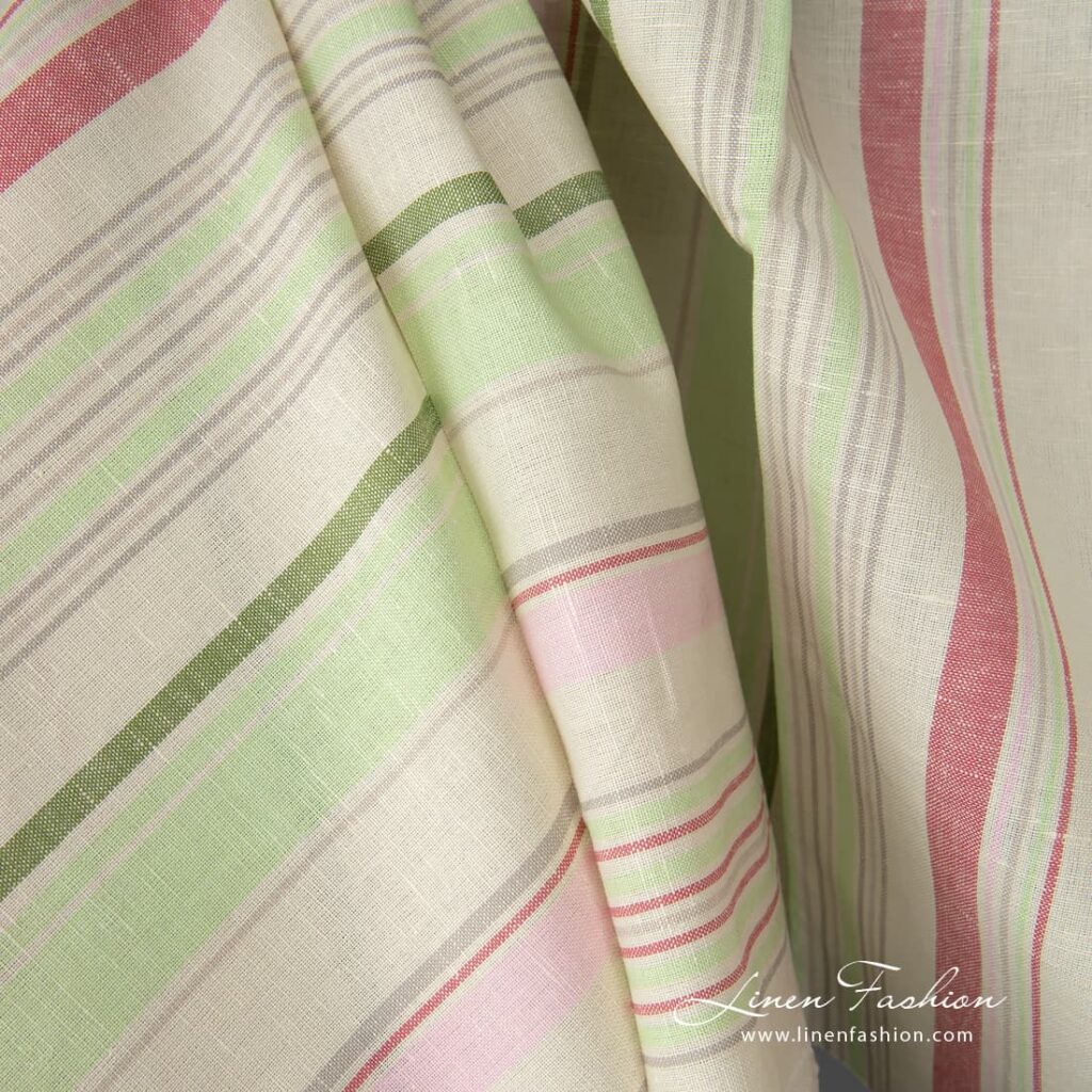 Lin-bomullsstoff i flerfargede striper