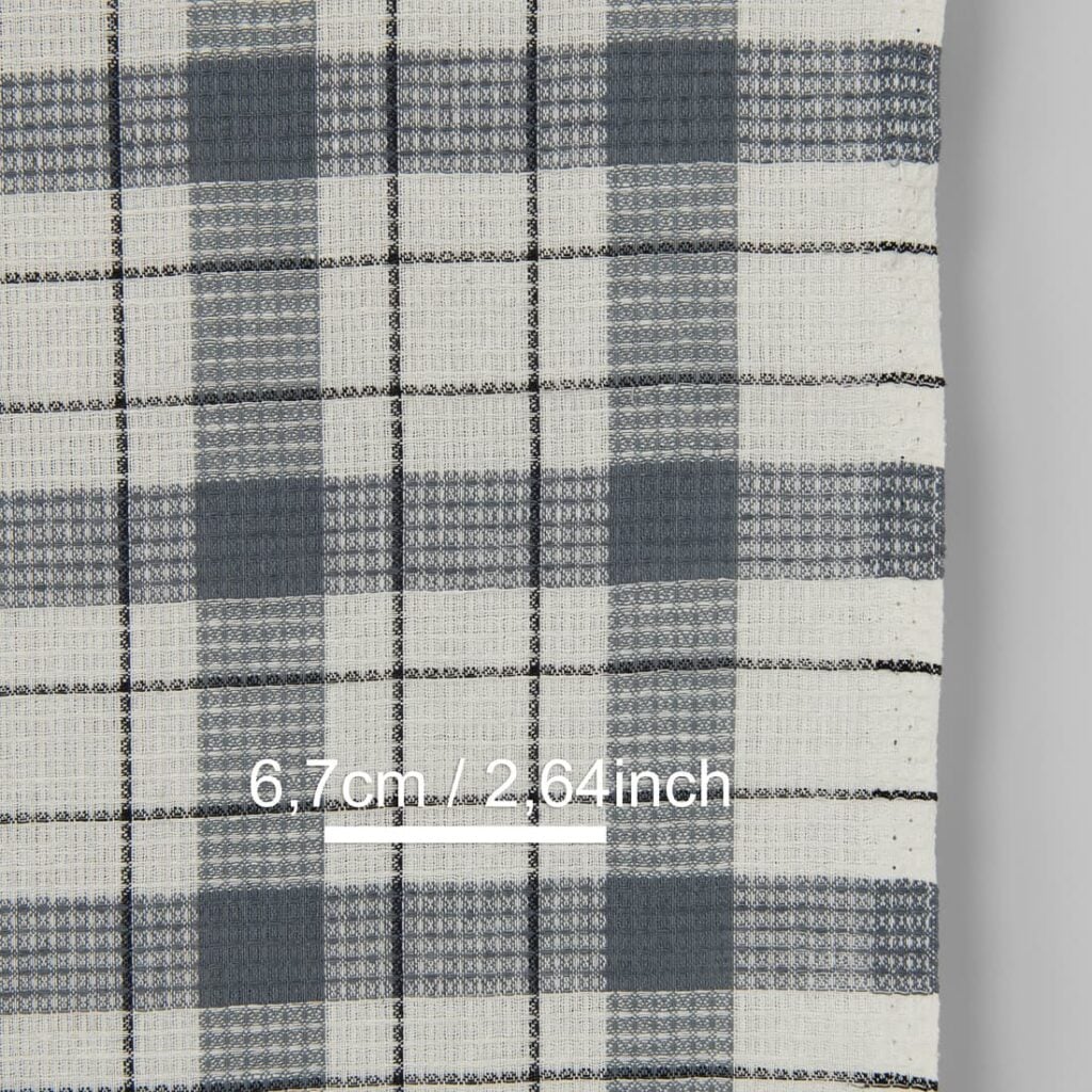 Smalt lin-bomullsstoff off-white med grå ruter vaffelvevd antall