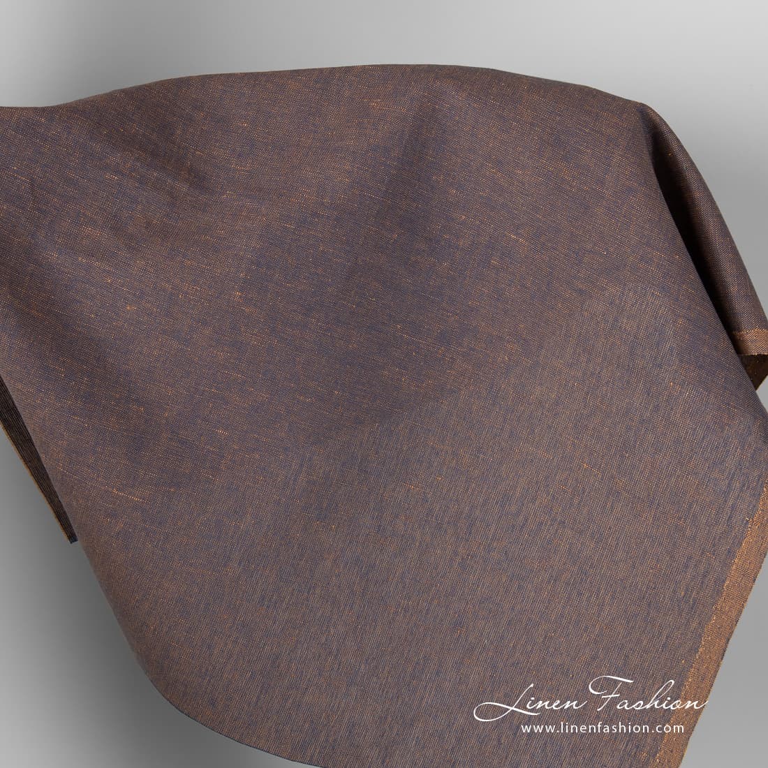 Lin-bomullsstoff flerfarget brun grønn ruter