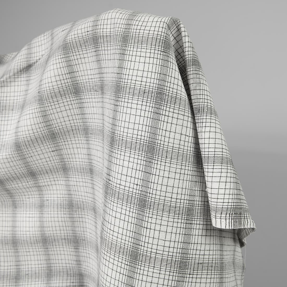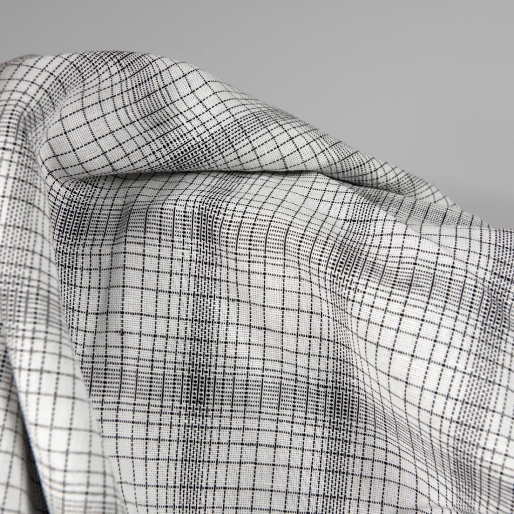 Lin bomull stoff mørkebrun og beige kyper ruter