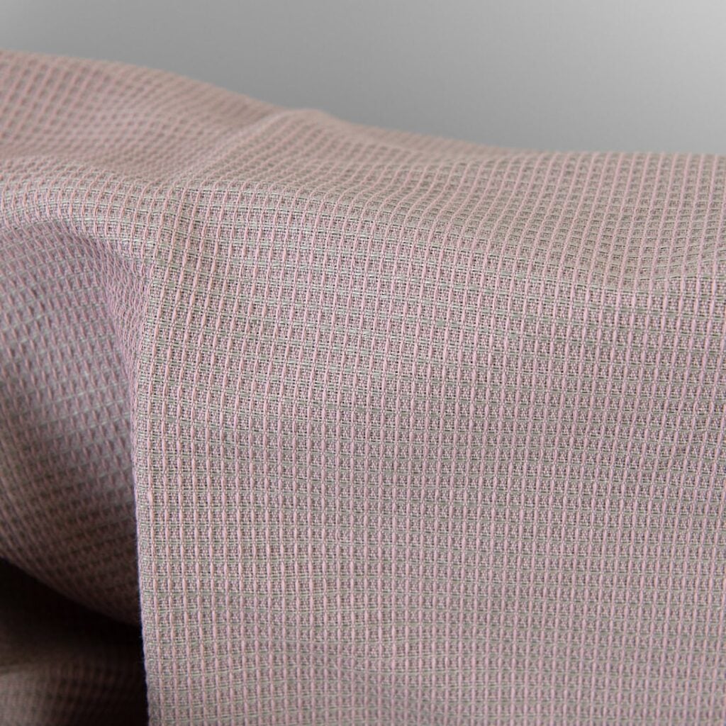 Lin bomull kraftig stoff lilla og grå vaffel antall