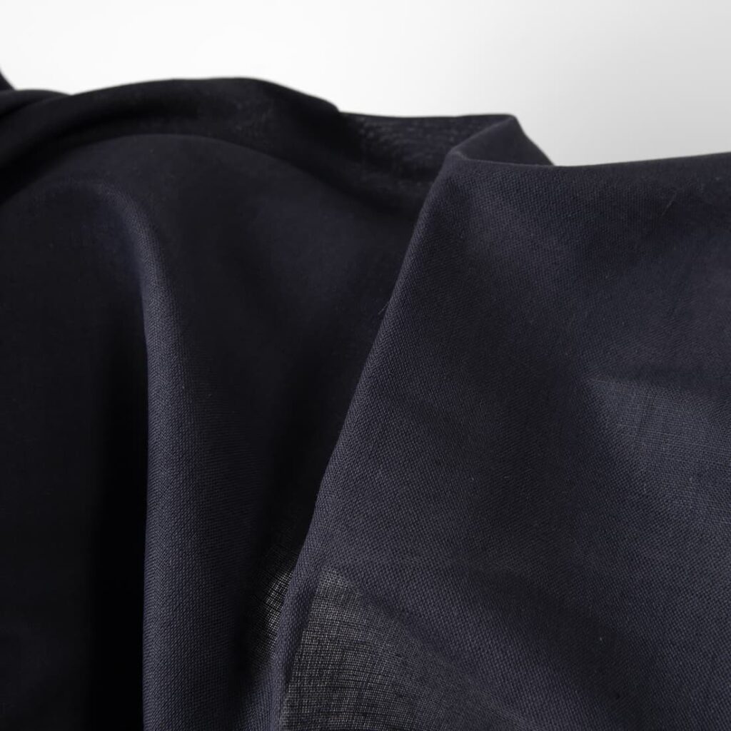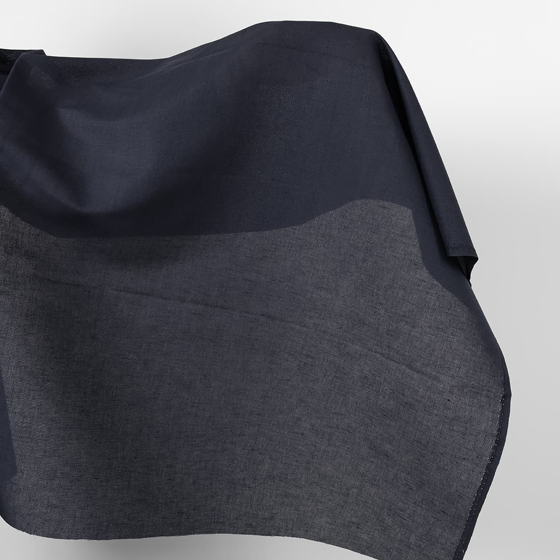 Lin- og bomullsstoff med blå og grønne mønstrede striper