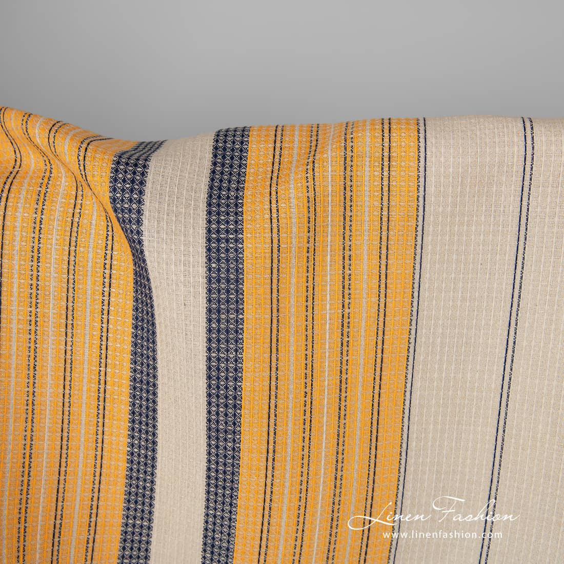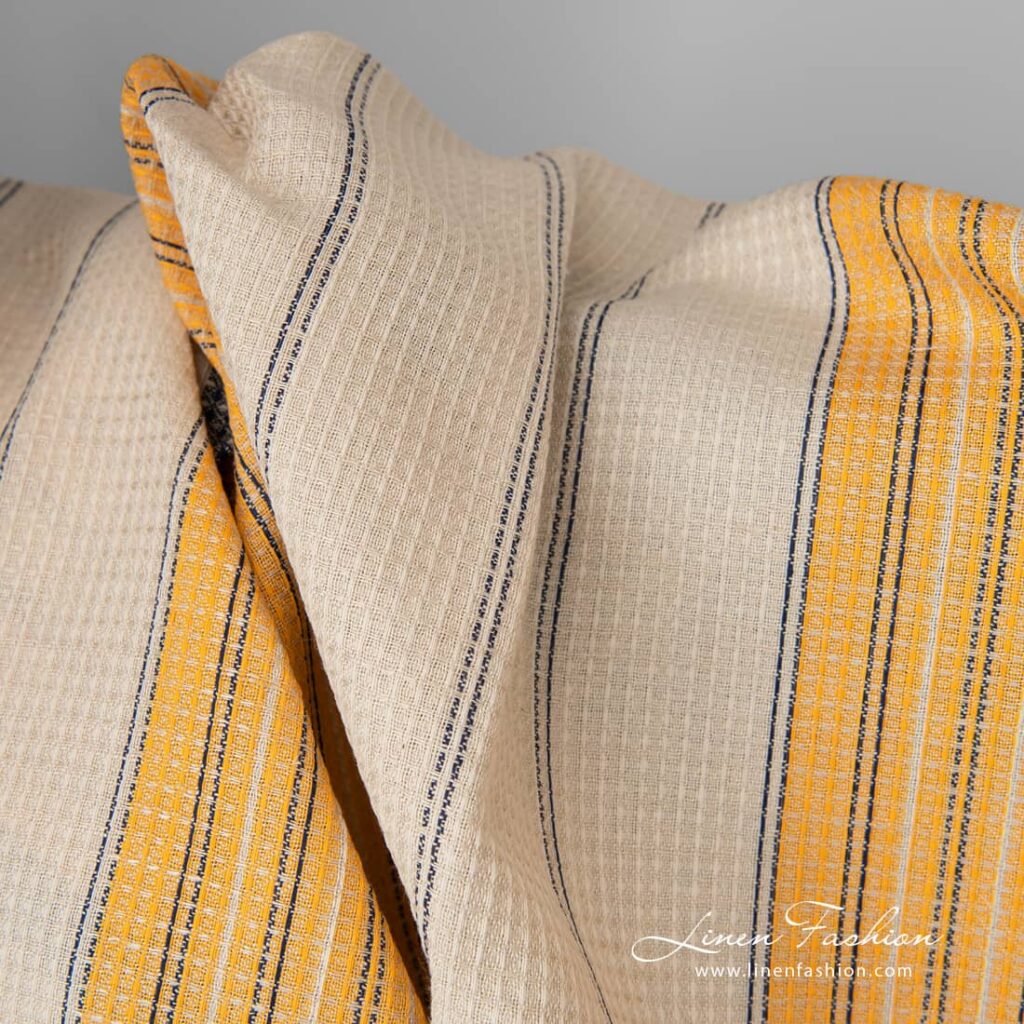Lin-bomullsstoff sand vaffelvev med gulblå striper