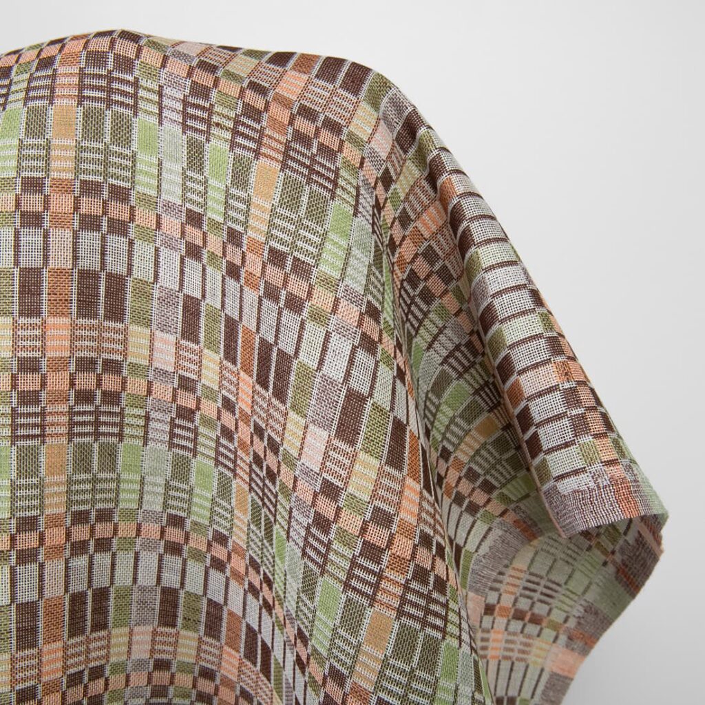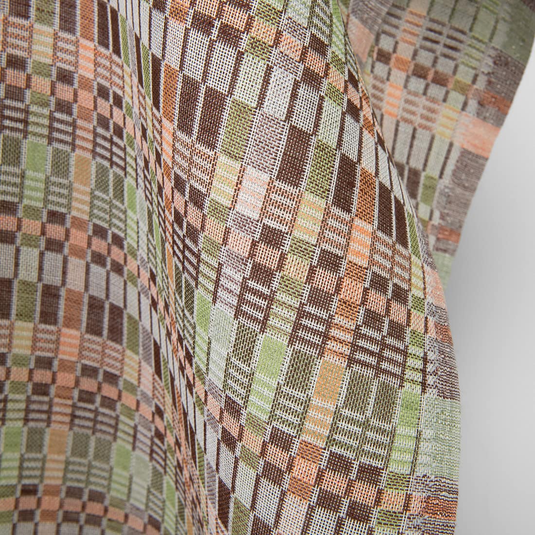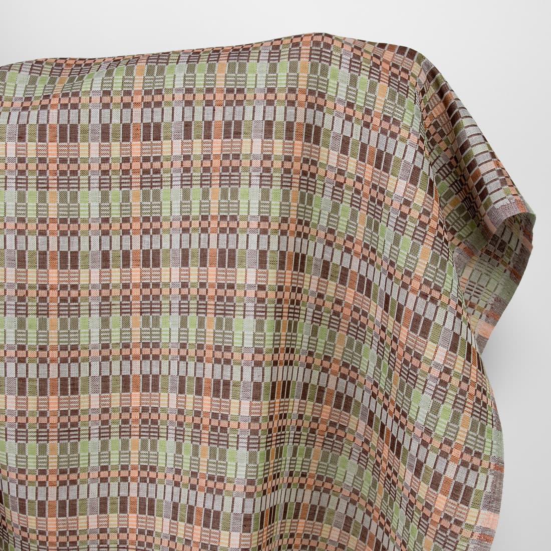 Lin-bomullsstoff flerfarget brun grønn ruter