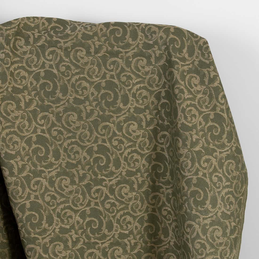 - Farge: blanding av olivengrønn, naturlig lin (ufarget, brungrå) og metallisk gull “lurex”-garn