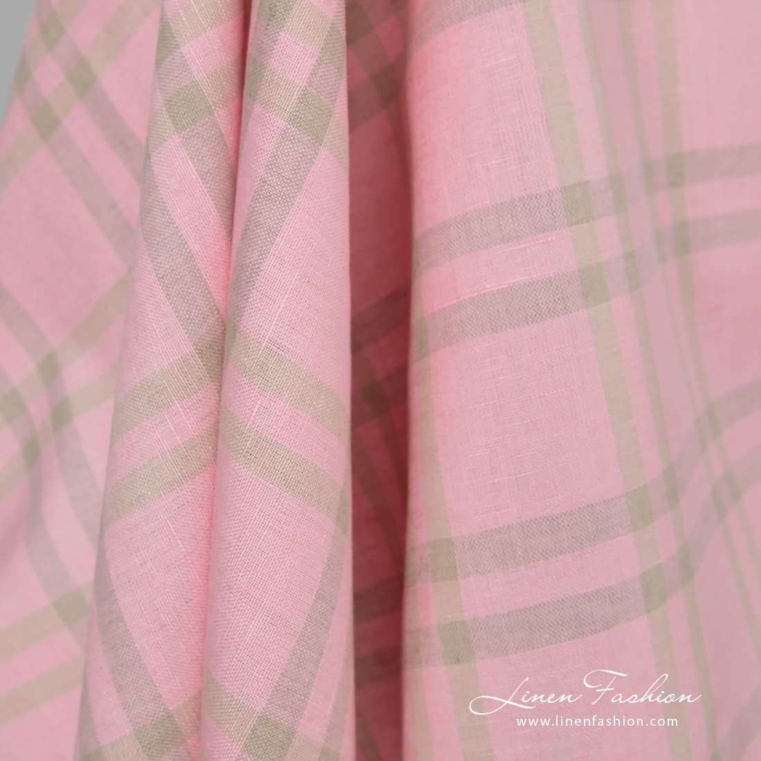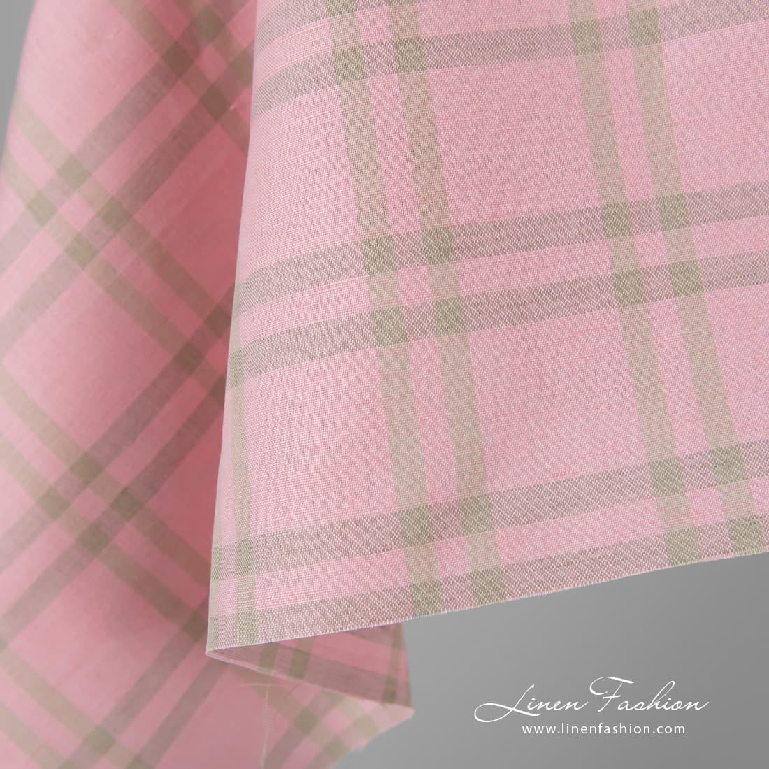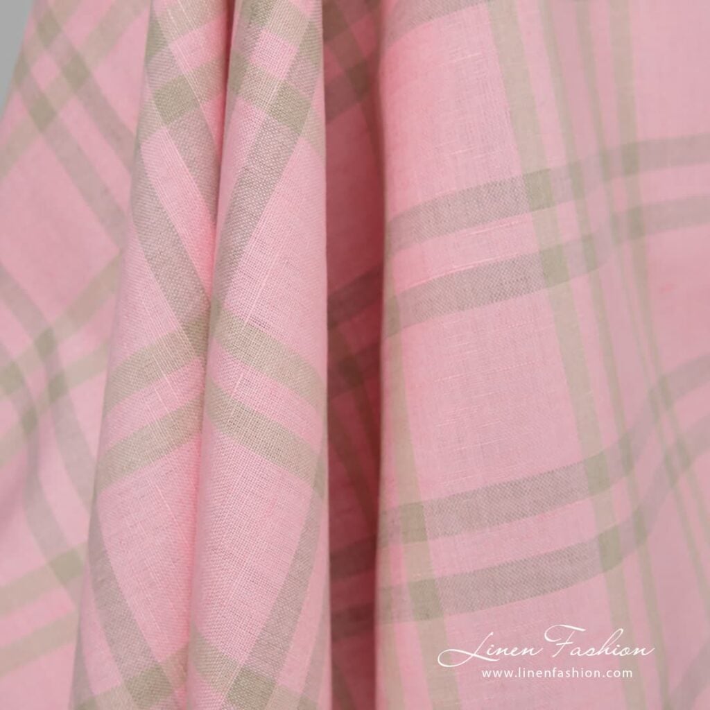 Rosa rutete lin-bomullsstoff