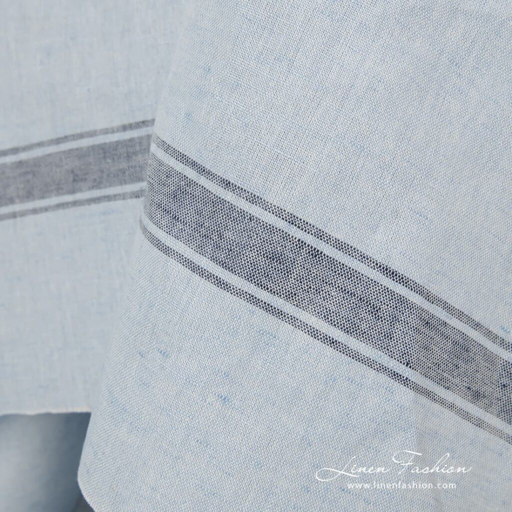 Lyseblått stripete lin-bomullsstoff antall